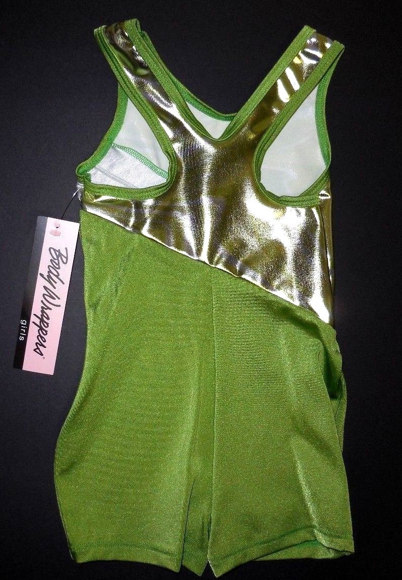 Body Wrappers Green Metallic Foil Silver Gymnastic Biketard Girls Szs 2326