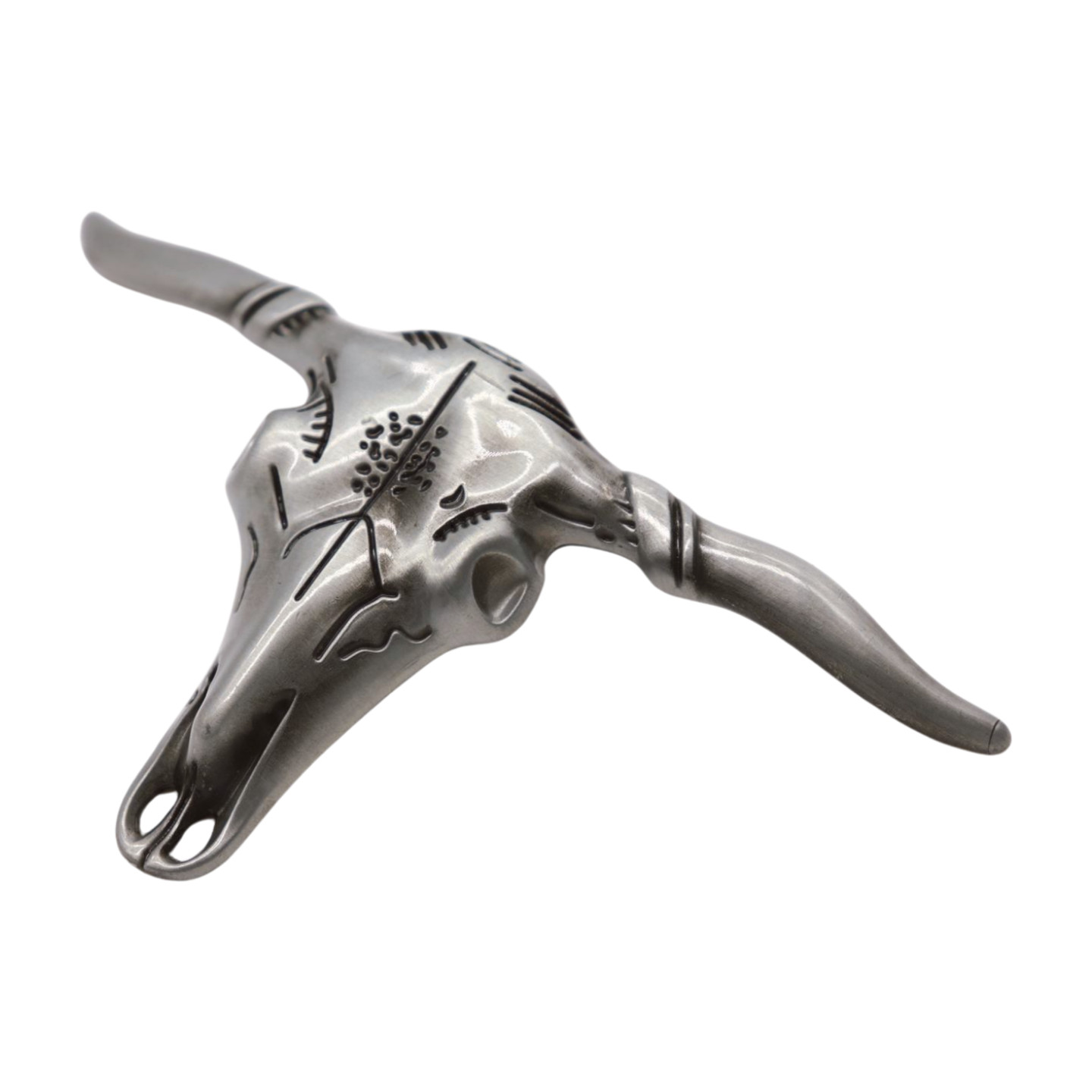Men Western Fashion Silver Metal Belt Buckle Long Horn Texas Cow Big Bull Skull