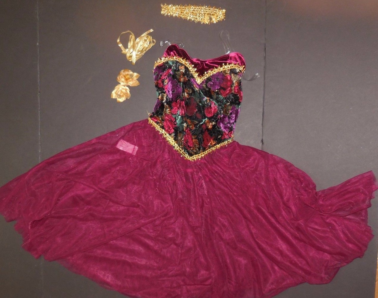 как выглядит Lyrical Ballet Costume WINE Tapestry Corset Back Chiffon Skirt Gold Ch/Adlt NWT фото