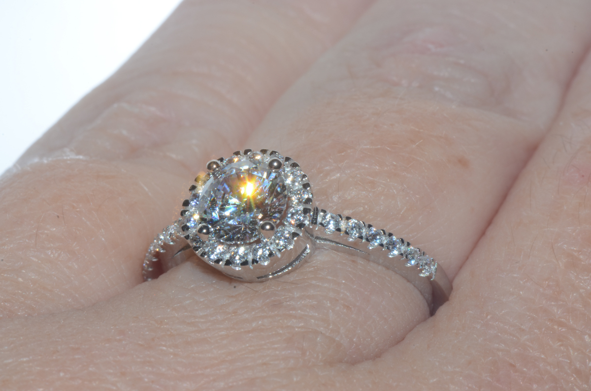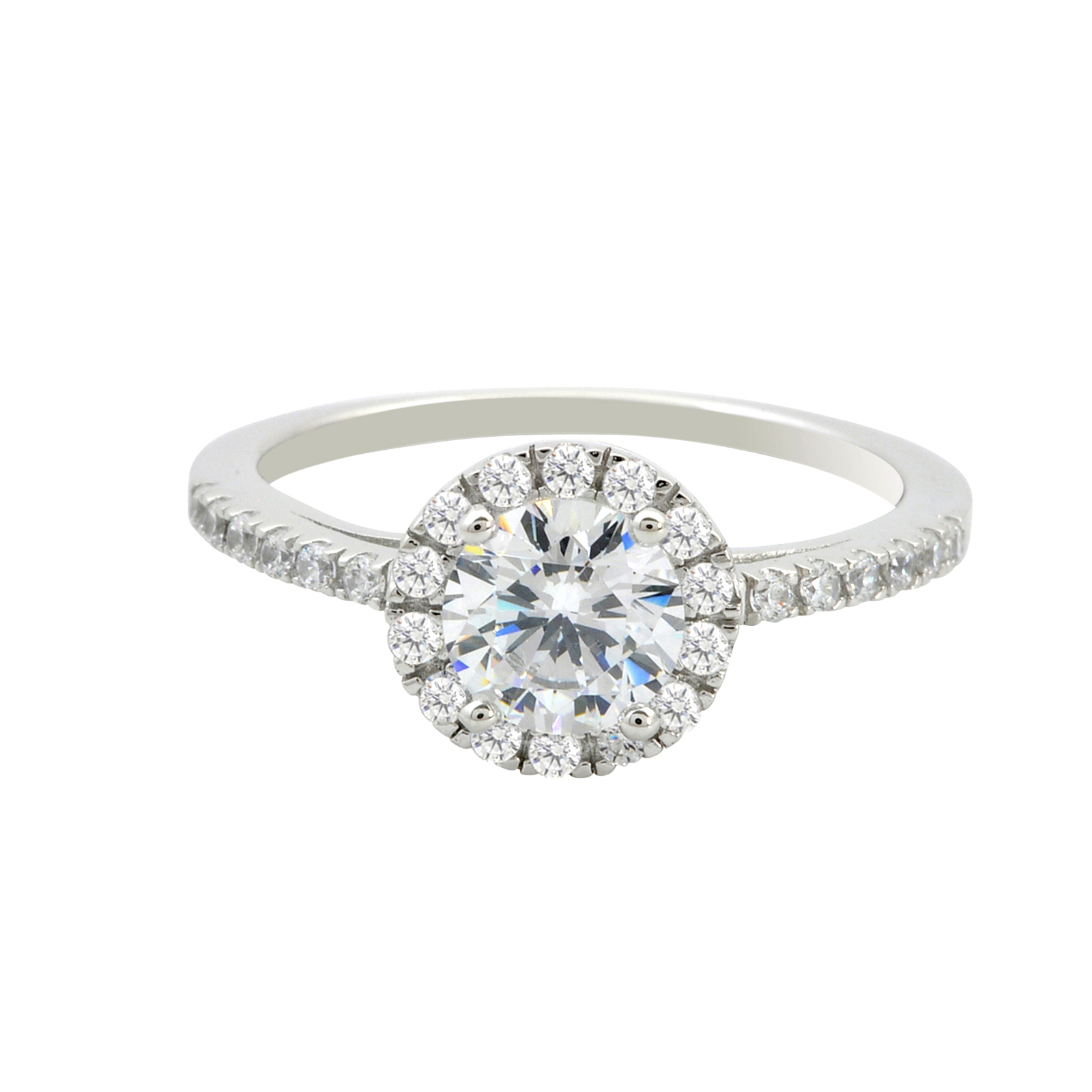 Sterling Silver Cubic Zirconia Ring 6mm Round Center Stone with Accent Stones