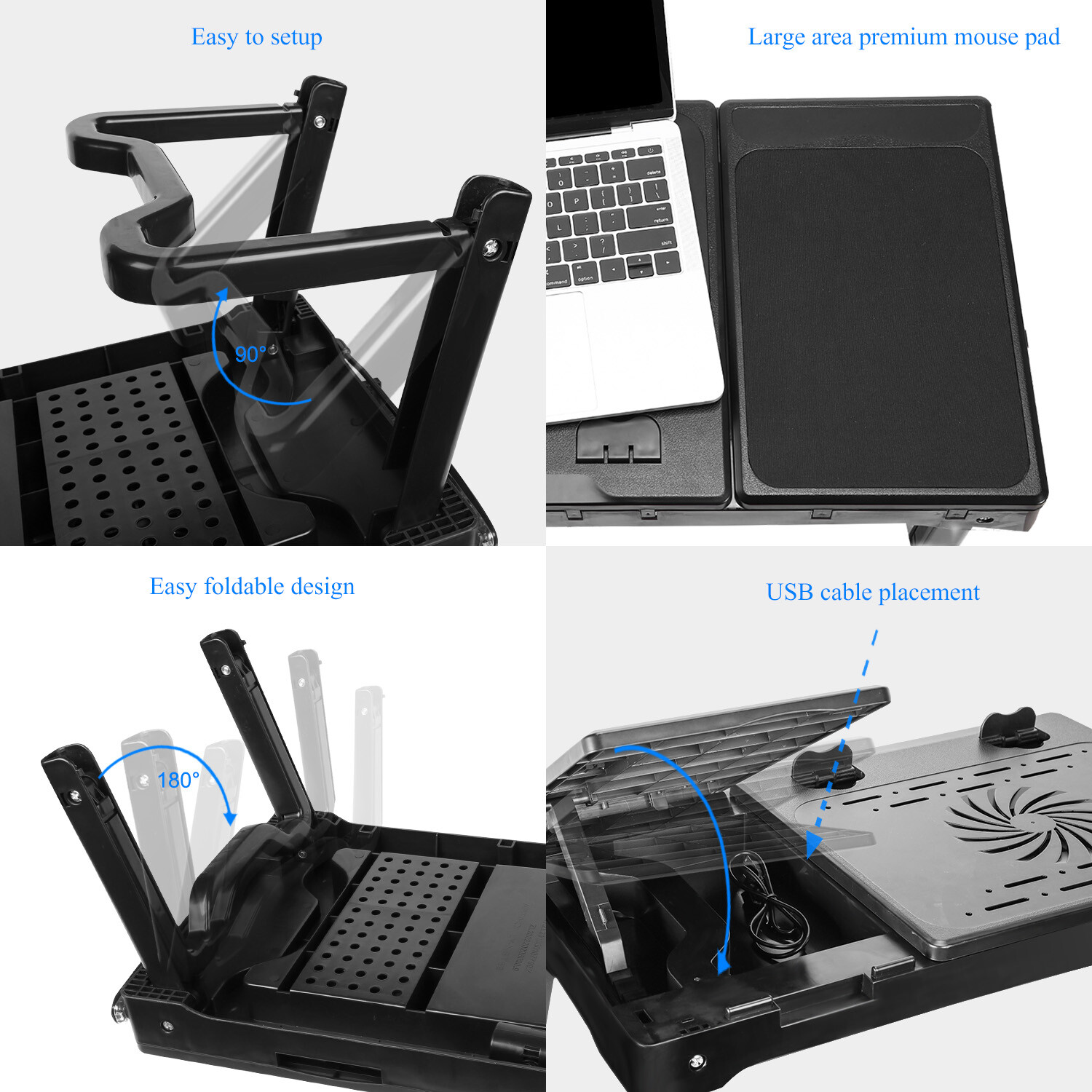 Foldable Laptop Table Tray Desk Tablet Desk Stand Bed Sofa Couch W/Cooling Fan