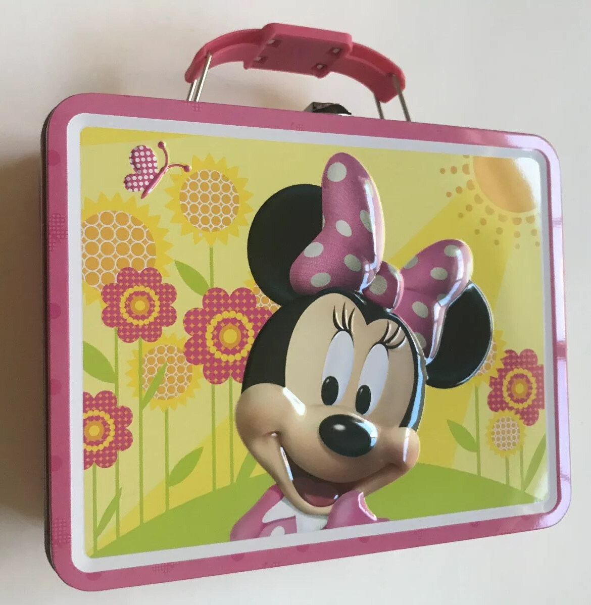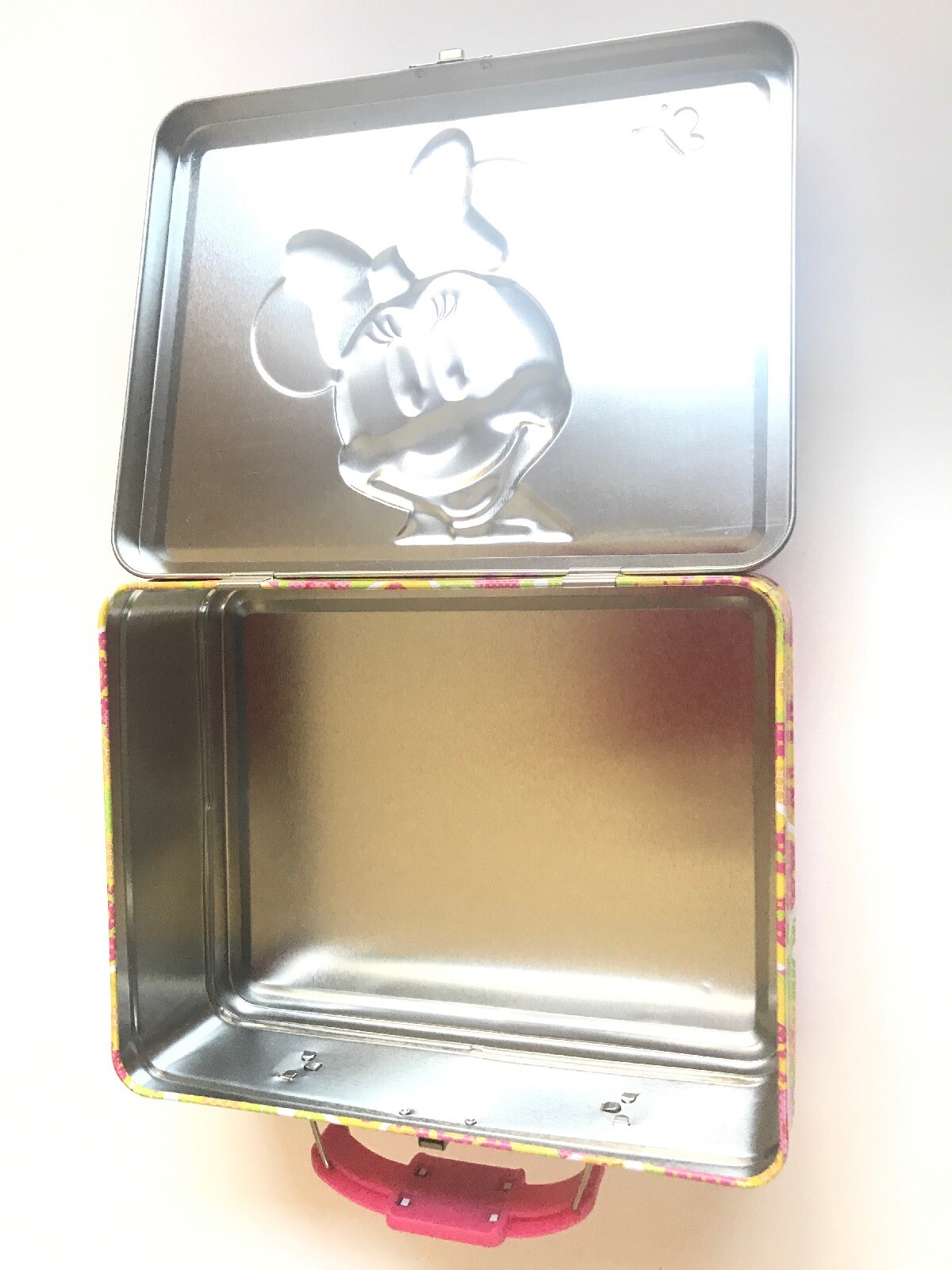 Tin Metal Lunch Snack Toy Box Embossed Disney Minnie Mouse Flower NEW