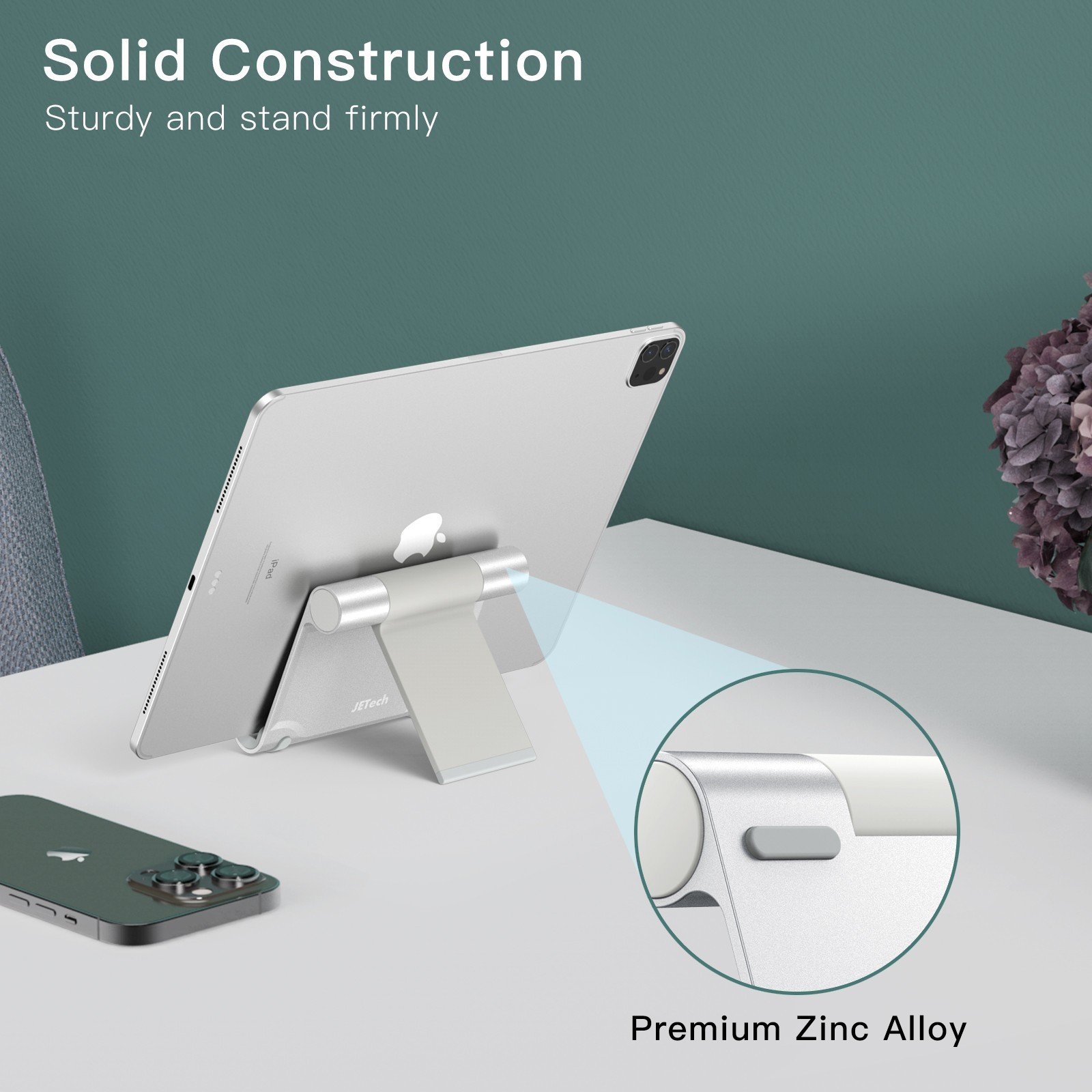JETech Tablet Stand, Adjustable Portable Desktop Holder, Silver
