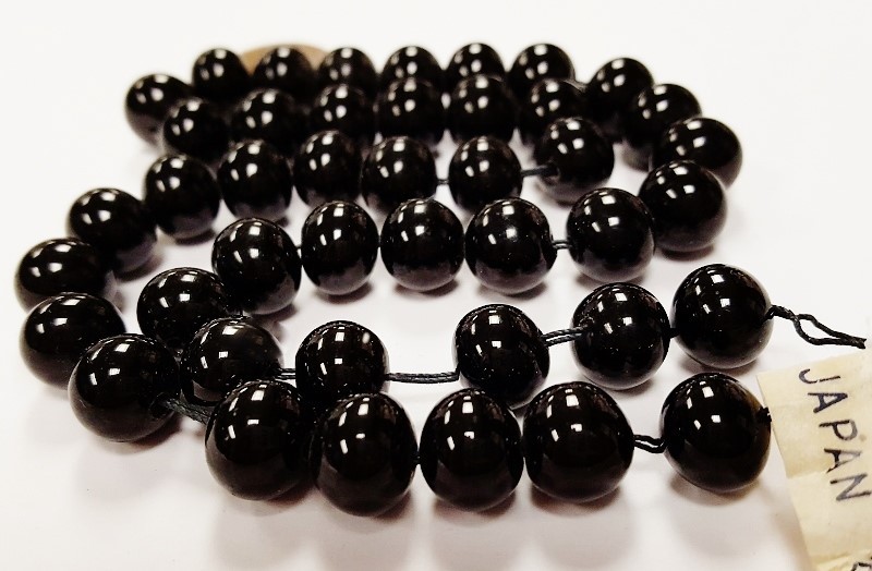как выглядит 40 VINTAGE JAPAN CHERRY BRAND GLASS BLACK 9mm. To 10mm. SMOOTH ROUND BEADS 4565 фото
