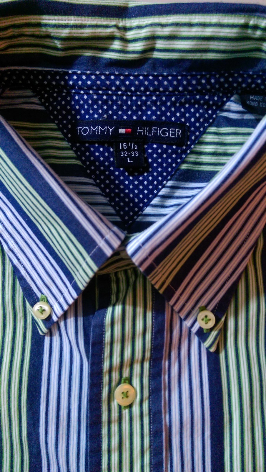 Tommy Hilfiger Dress Shirt Size L 16.5 / 32-33 Blue Green Stripes EUC