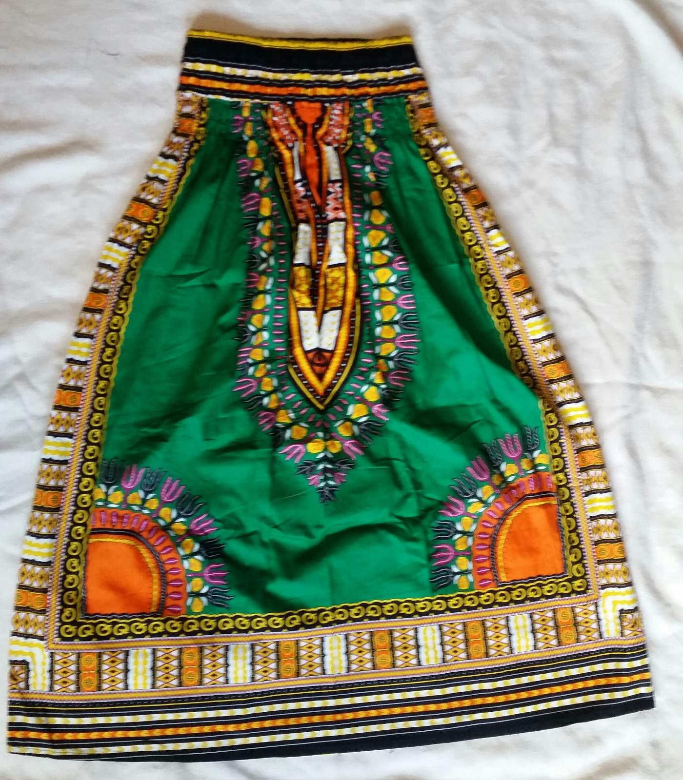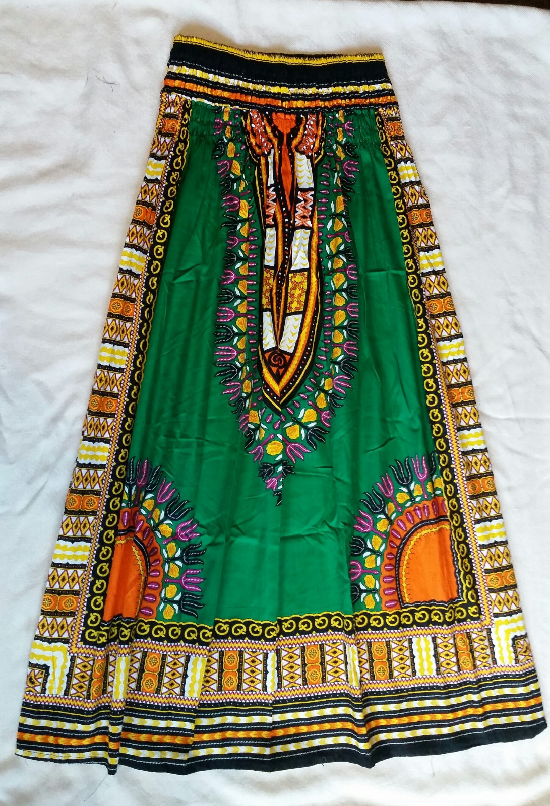 как выглядит Women Skirt African Ankara Dashiki Print High Waist Elastic Free Size Green фото
