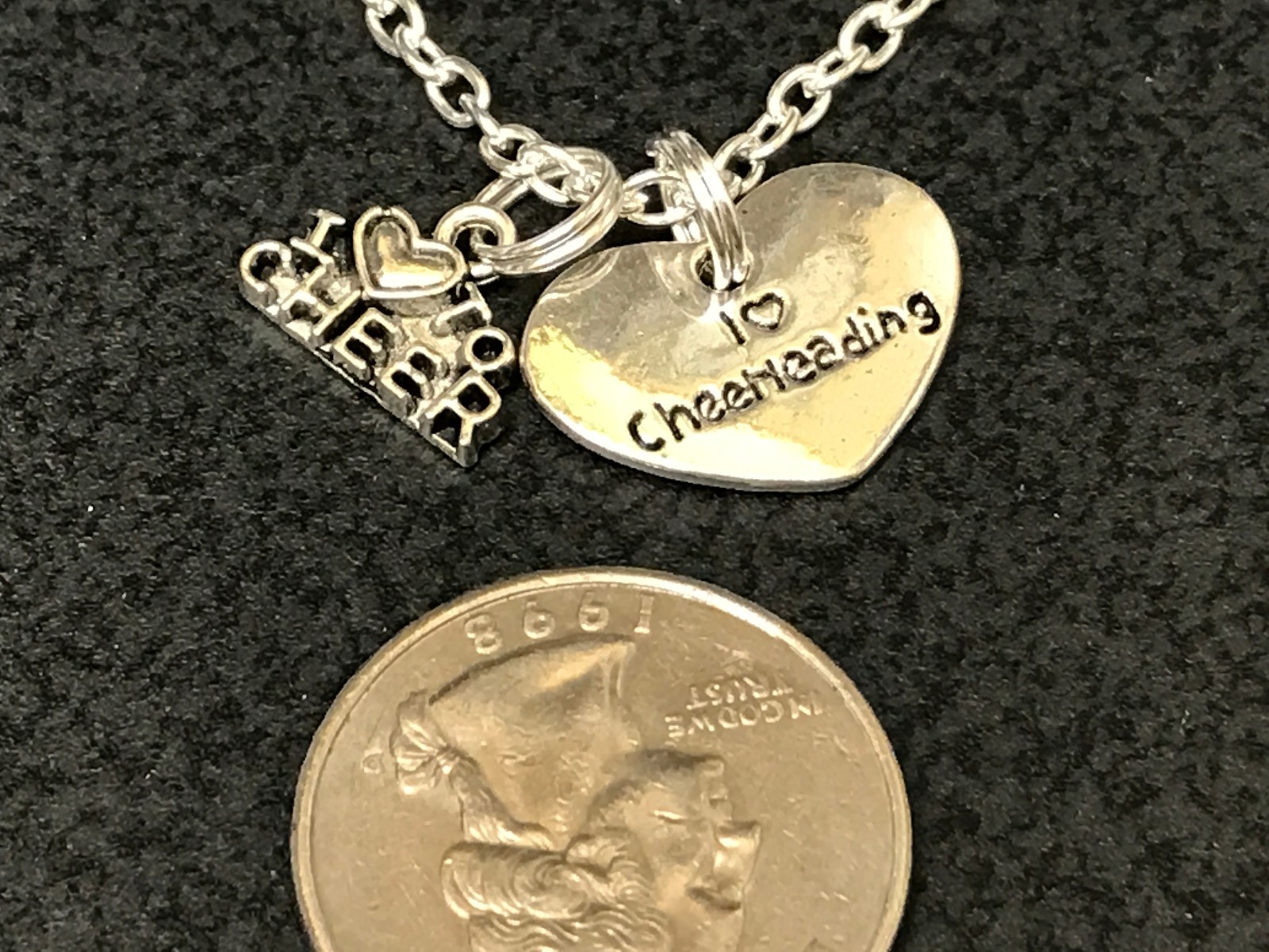 Cheerleader Love to Cheer Heart Charm Tibetan Silver 18 Necklace