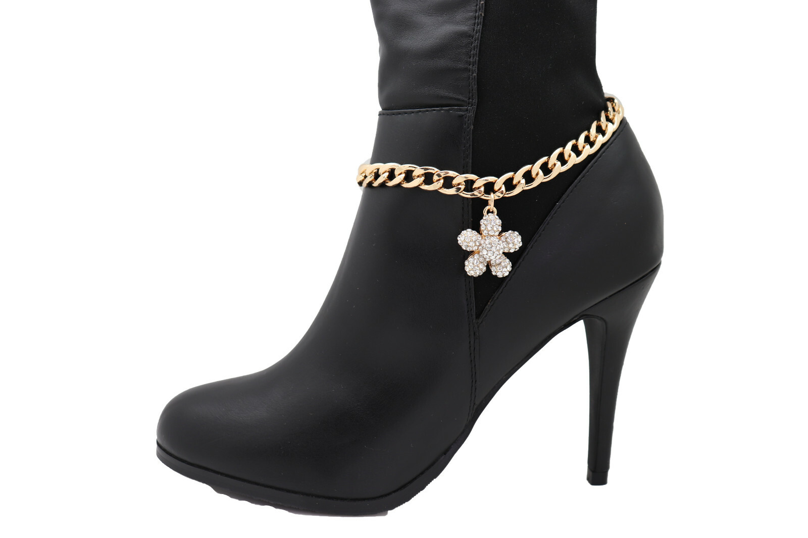 Women Gold Color Metal Chain Boot Bracelet Shoe Charm Flower Anklet Wrap Around