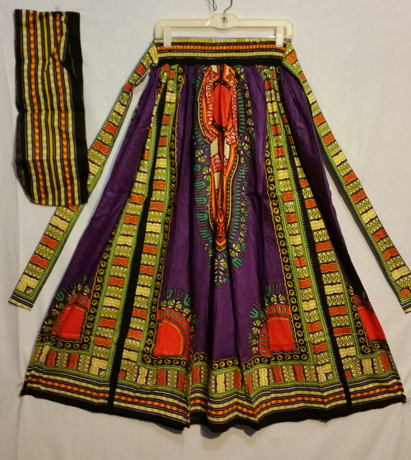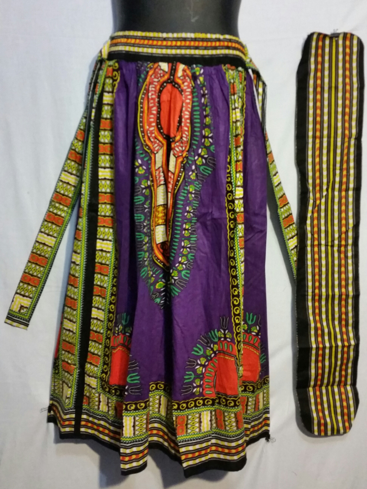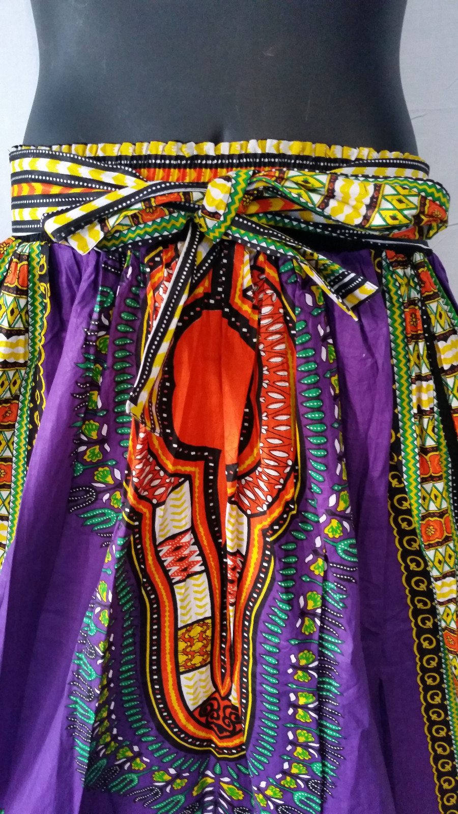 Ankara African Maxi Women Skirt Dashiki Print 2 Pocket Belt Free Size Purple