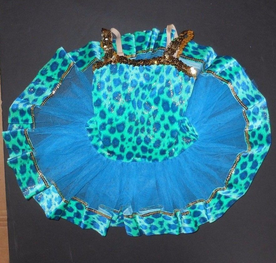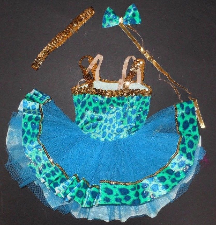 Gold Mint Leopard Dance Costume Tap Jazz attched Skirt Girls over 10 available