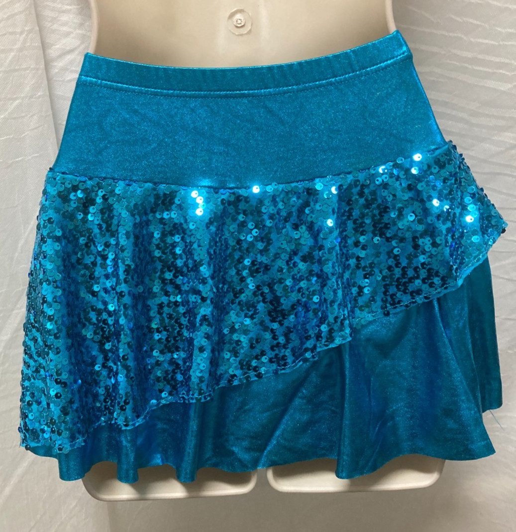 NWOT Sequin dance costume skirt Turquoise child sz Medium elastic waist