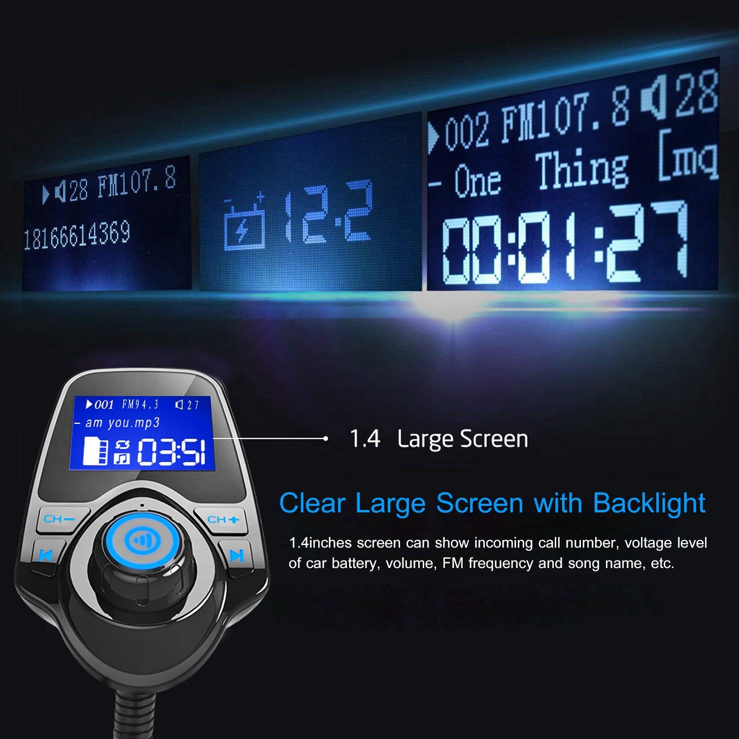 Особенности: 5V/2.1A Fast Charging, AUX Port, Charging Capability, FM, Handsfree Calling, Memory Card Slot, MP3 Player