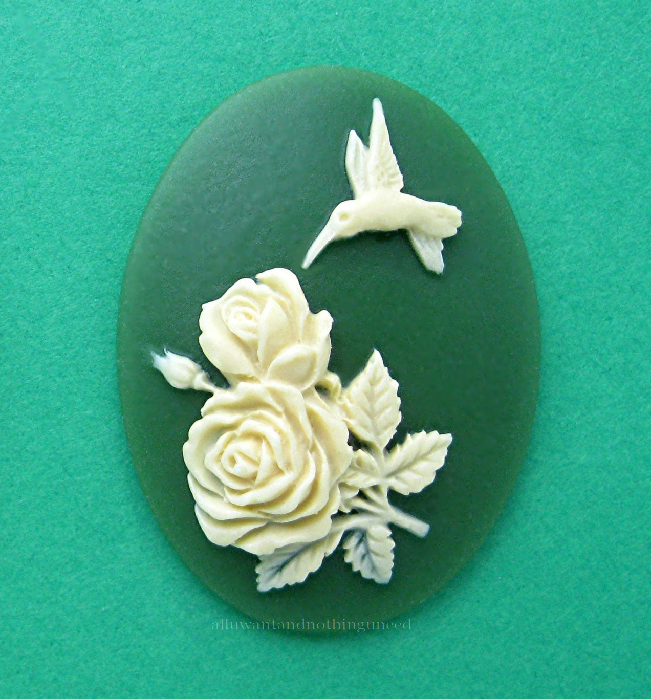 как выглядит 4 IVORY Color HUMMINGBIRD ROSES Flowers on IRISH GREEN 40mm x 30mm Craft CAMEOS фото