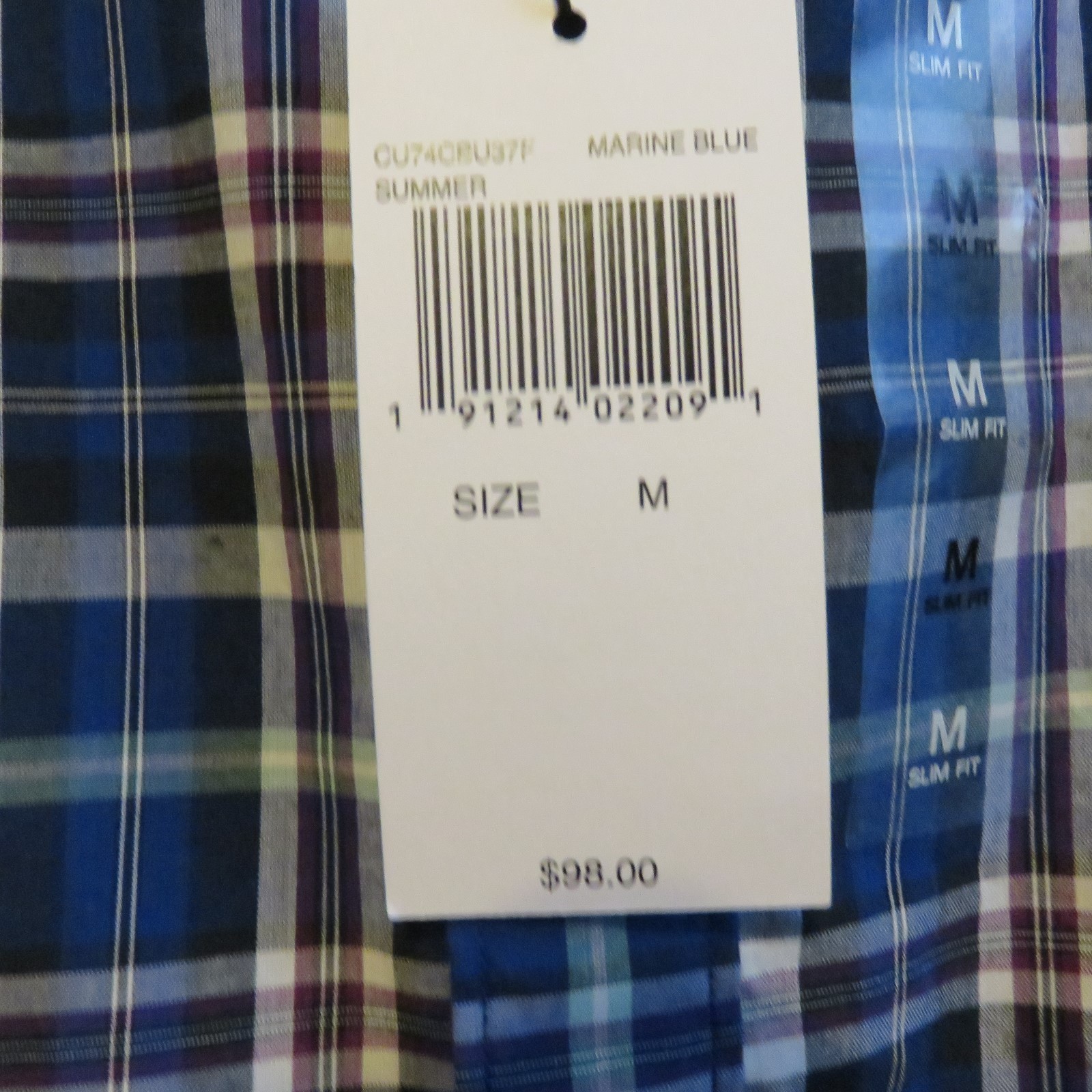 Men's Michael Kors long sleeve dress shirt marine blue plaid size M NWT 98