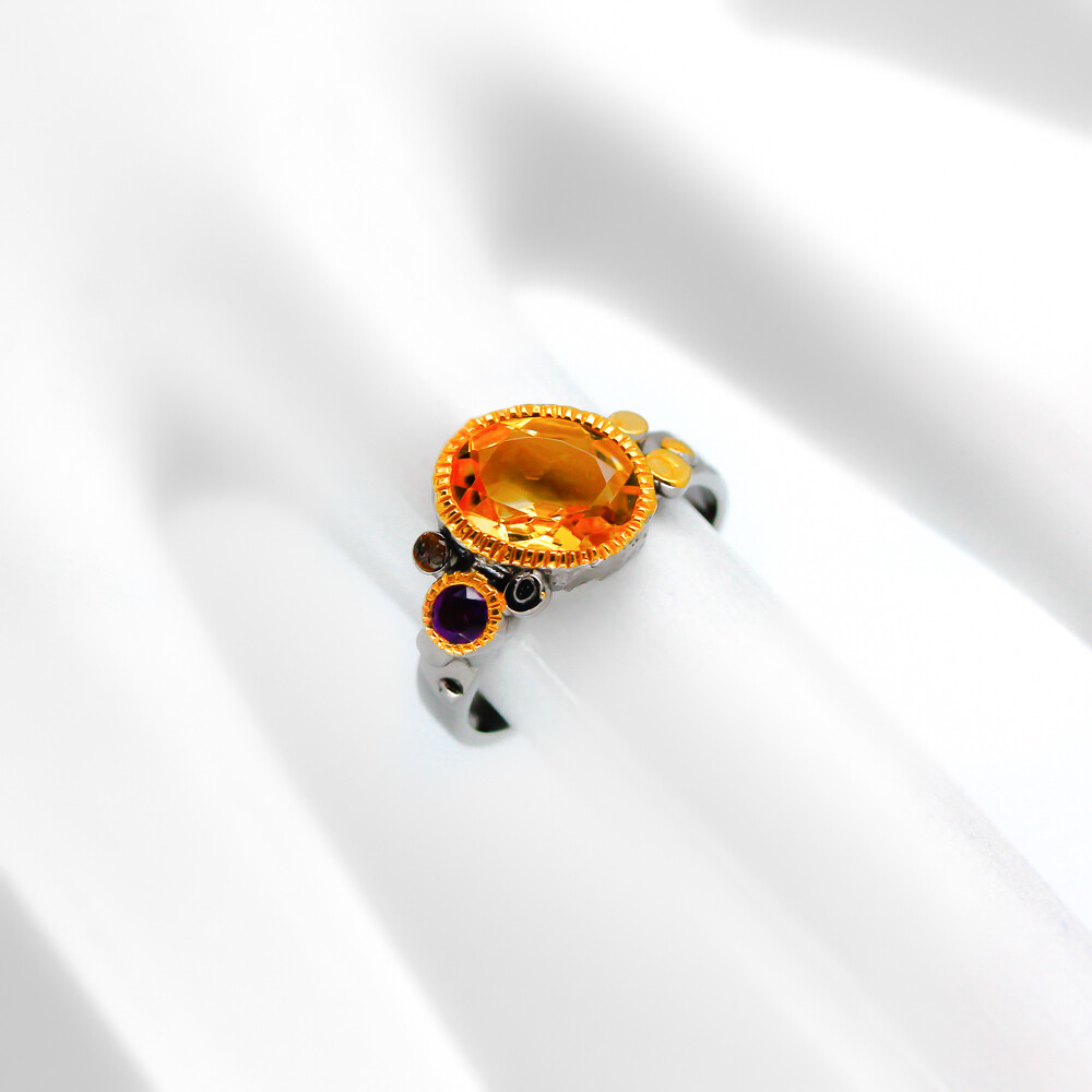 как выглядит Handmade vintage 9x7 Natural Citrine 925 Sterling Silver Ring / RVS13 фото