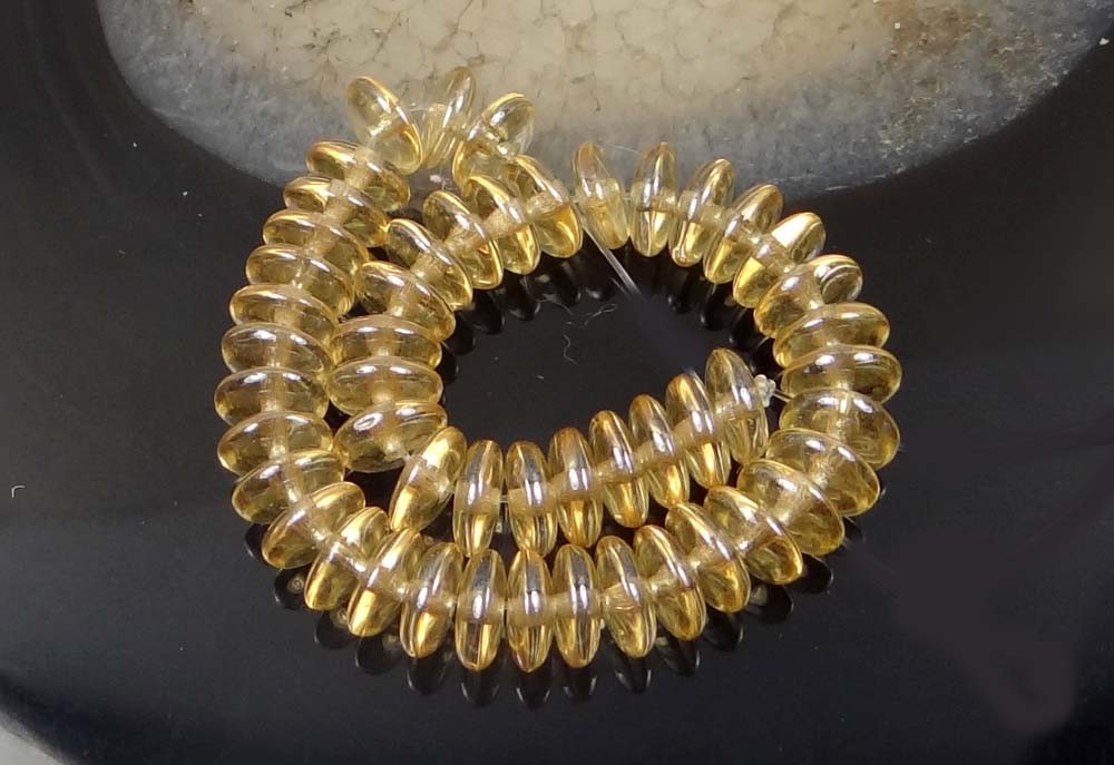 как выглядит 50 Czech Glass Rondelle Beads - Luster - Transparent Champagne 6x2mm фото