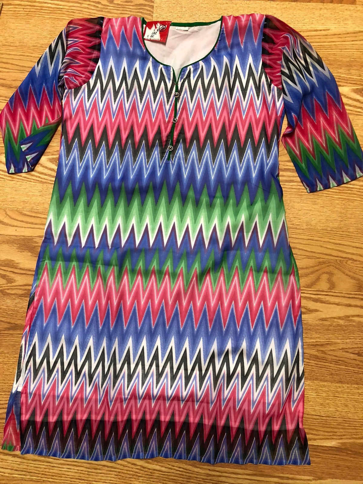 как выглядит KURTI Kurta Kameez INDIA-NEW-SZ XXL-GEORGETTE ZIG ZAG BLUE RED -USA SHIP фото