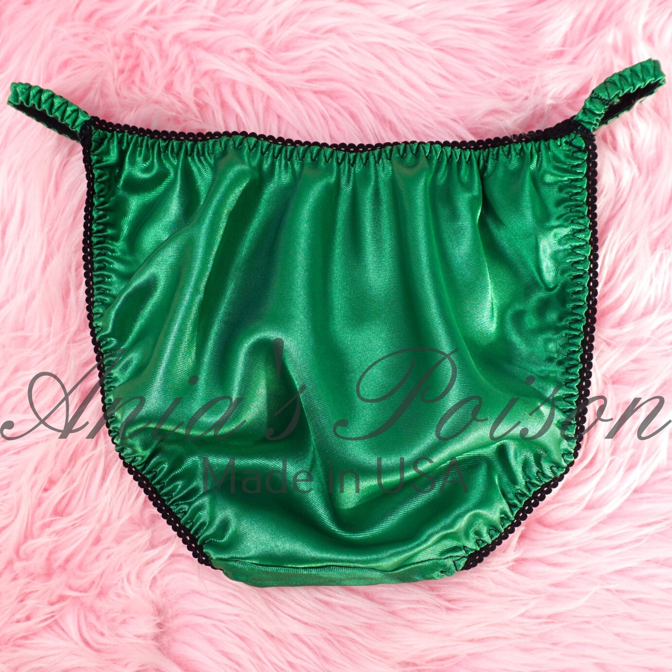 Christmas Green Satin shiny wet look lady sissy panties String bikini panties