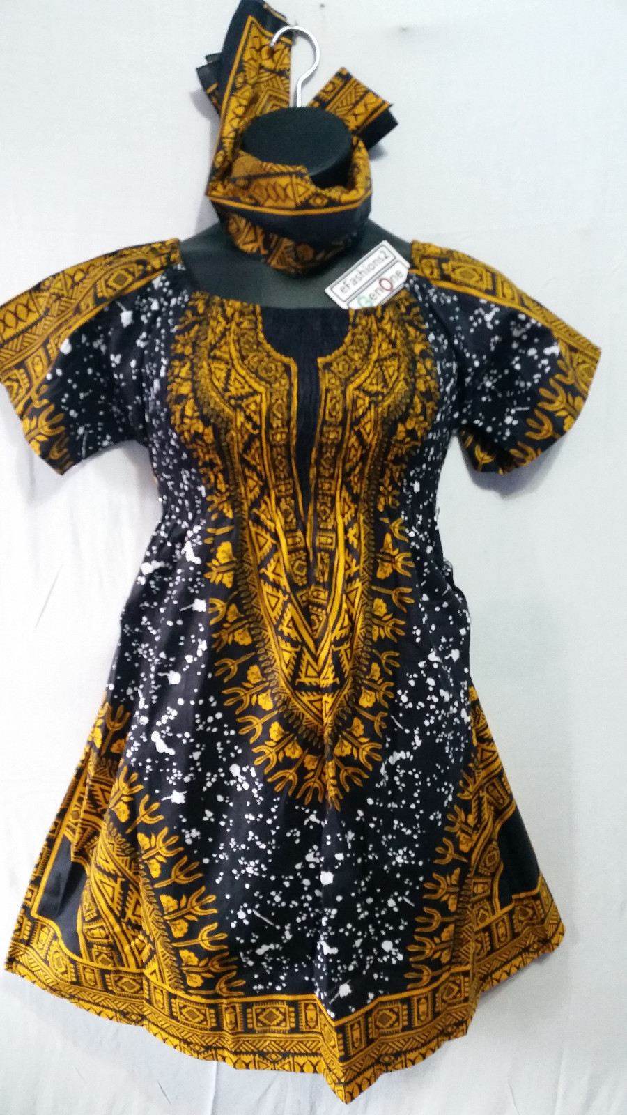 Women Dashiki Print Short Mini Dress Elatic Waist 2 Side Pocket Free Size