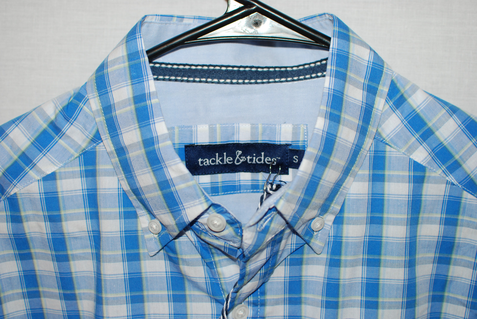 как выглядит NEW Tackle Tides Mens Long Sleeve Plaid Shirt Blue Size Small S NWT фото