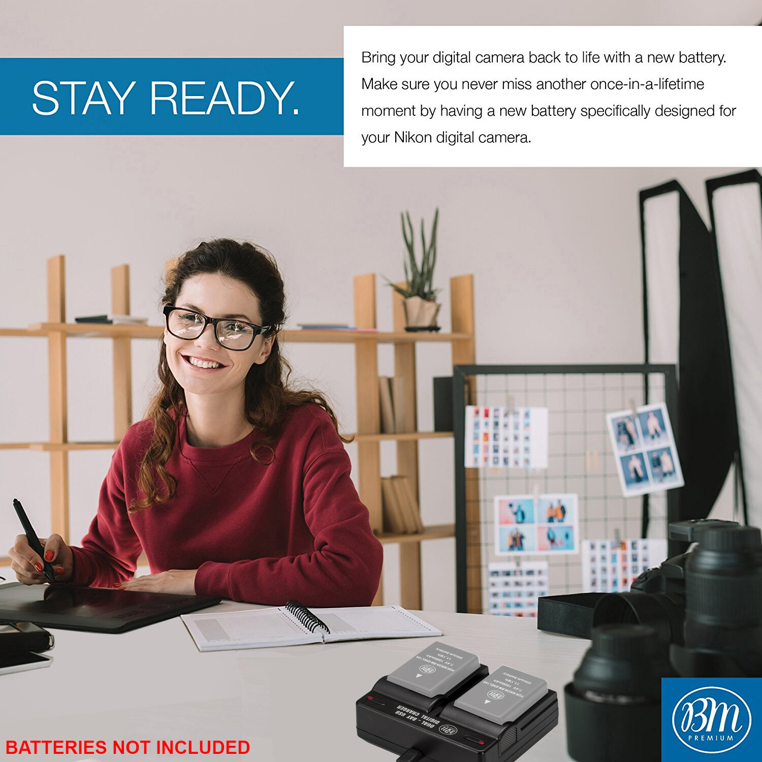 BM EN-EL14 Dual Bay Battery Charger for Nikon D5100, D5200, D5300, D5500, D5600