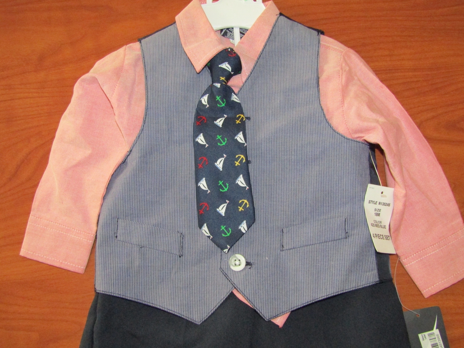 как выглядит NEW NAUTICA BABY BOYS MEDIUM BLUE 4 PIECE VEST SET WITH TIE SZ 18M 24M фото