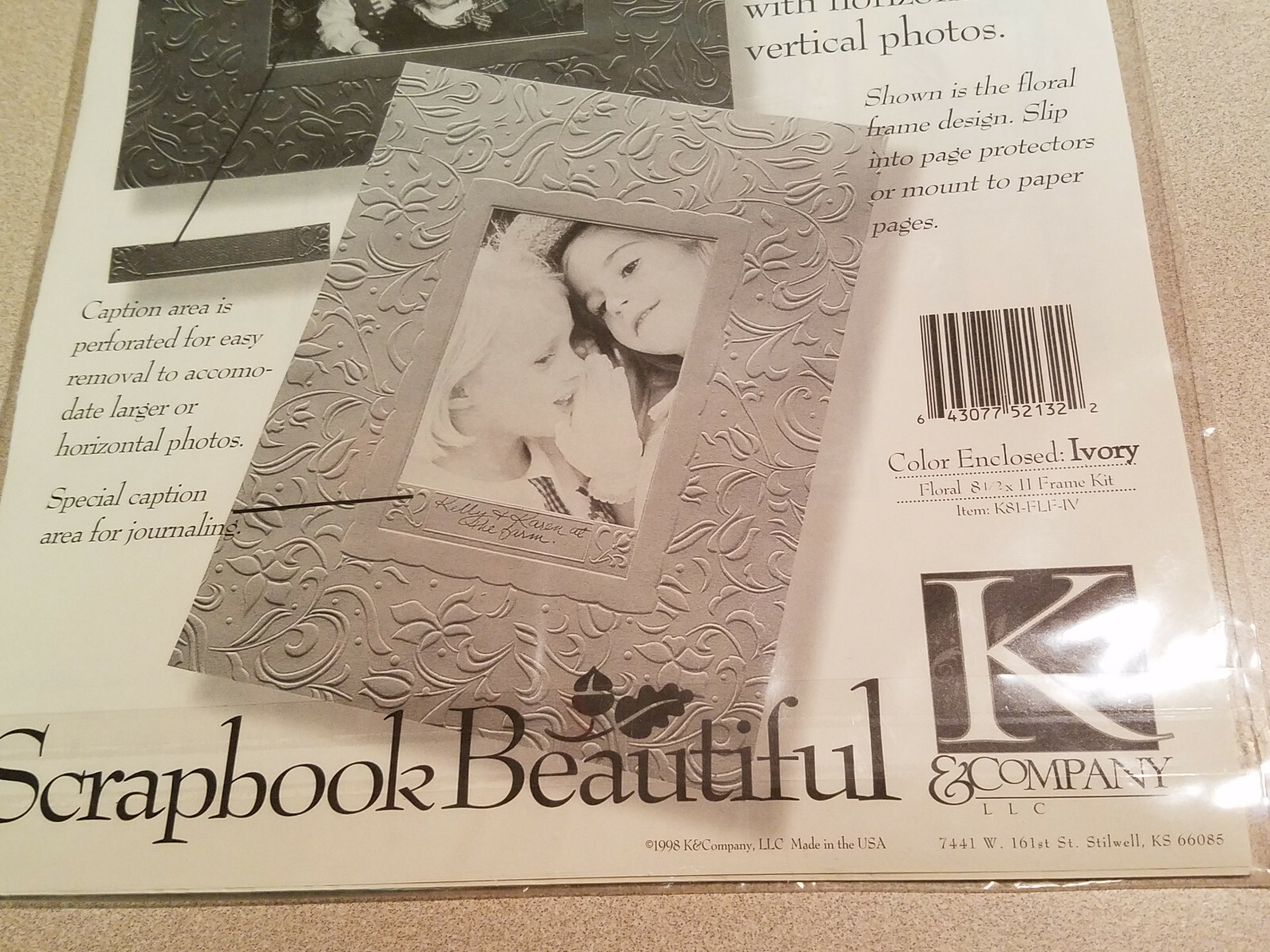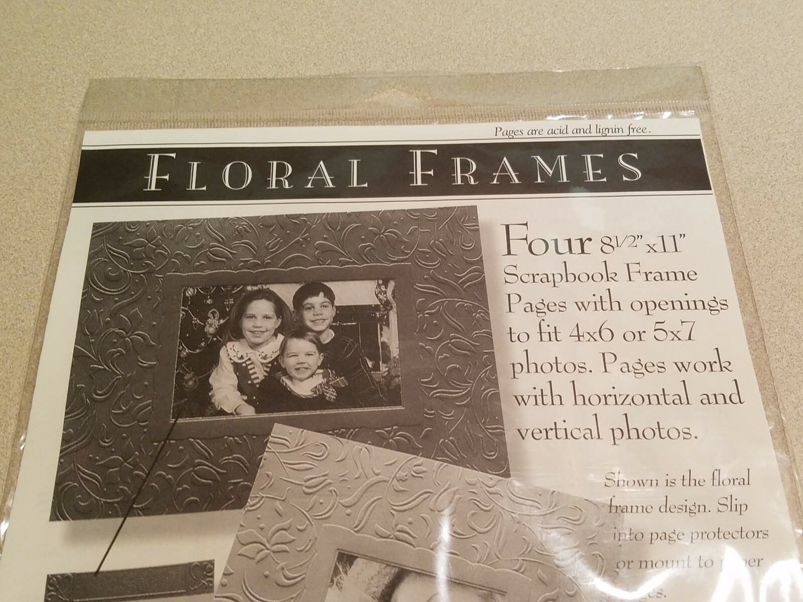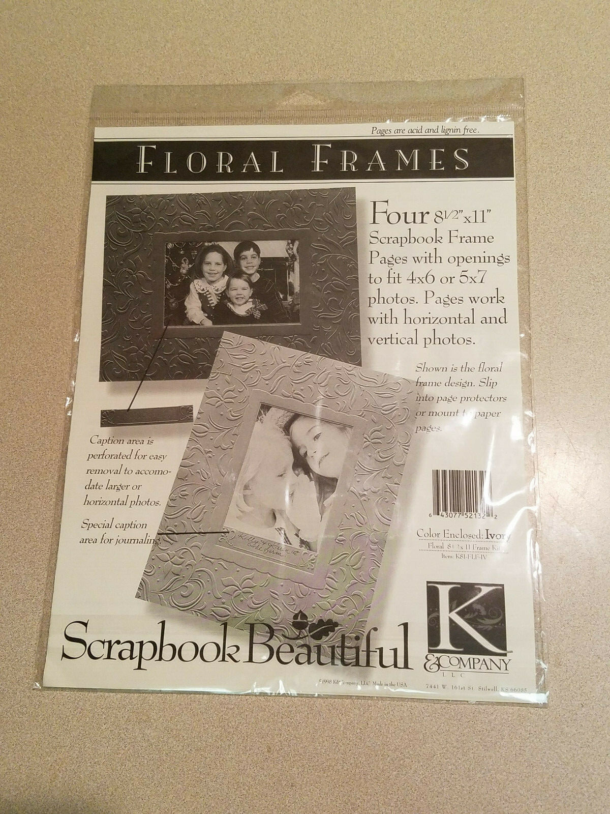 K Company Scrapbook Floral 4 ea. 8 1/2 x 11 Scrapbook Ivory Frame Pages NEW