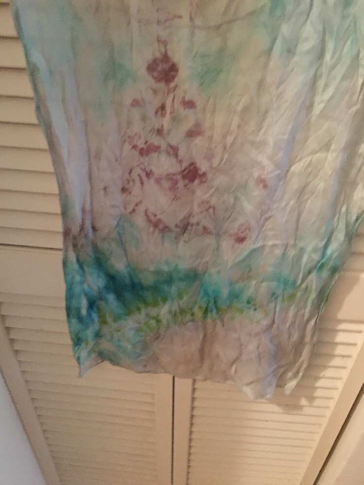 как выглядит VINTAGE GLENTEX HAND ROLLED SILK SCARF 46" x 16" SPLASHES OF GREEN BROWN фото