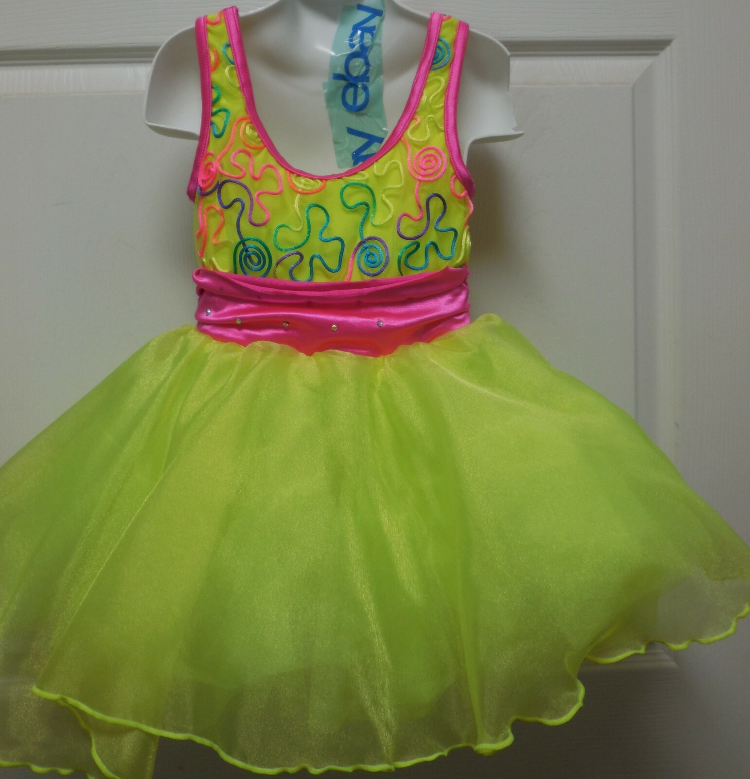как выглядит Neon Yellow Leotard Attached Skirt Weissmans Dance Costume Dress Int Child NWOT фото
