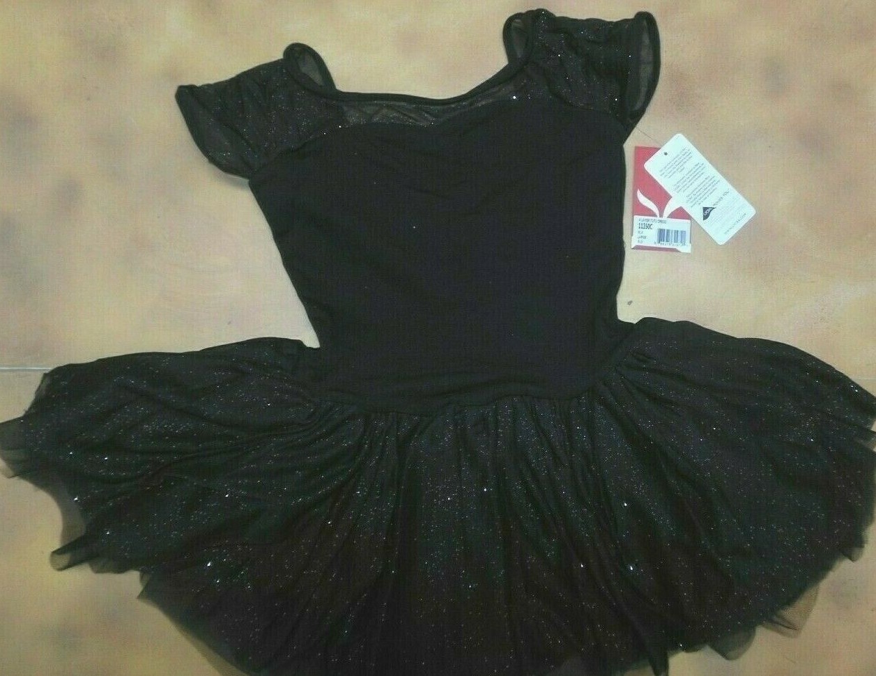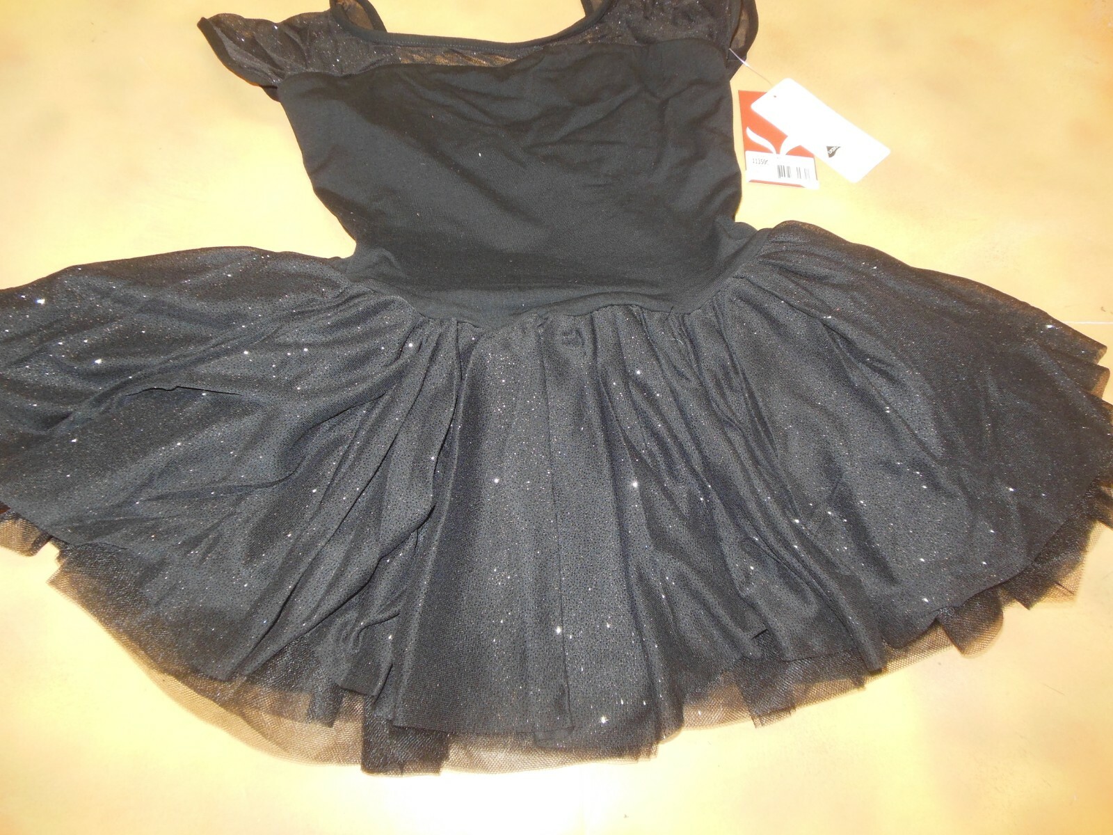 CAPEZIO 11350C child large 4 layer tutu dress in black sheer cap sleeves