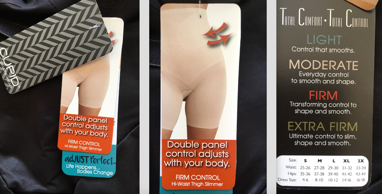 CUPID FINE SHAPEWEAR FIRM CONTROL HI-WAIST THIGH SLIMMER 2179-E , BLACK - LARGE