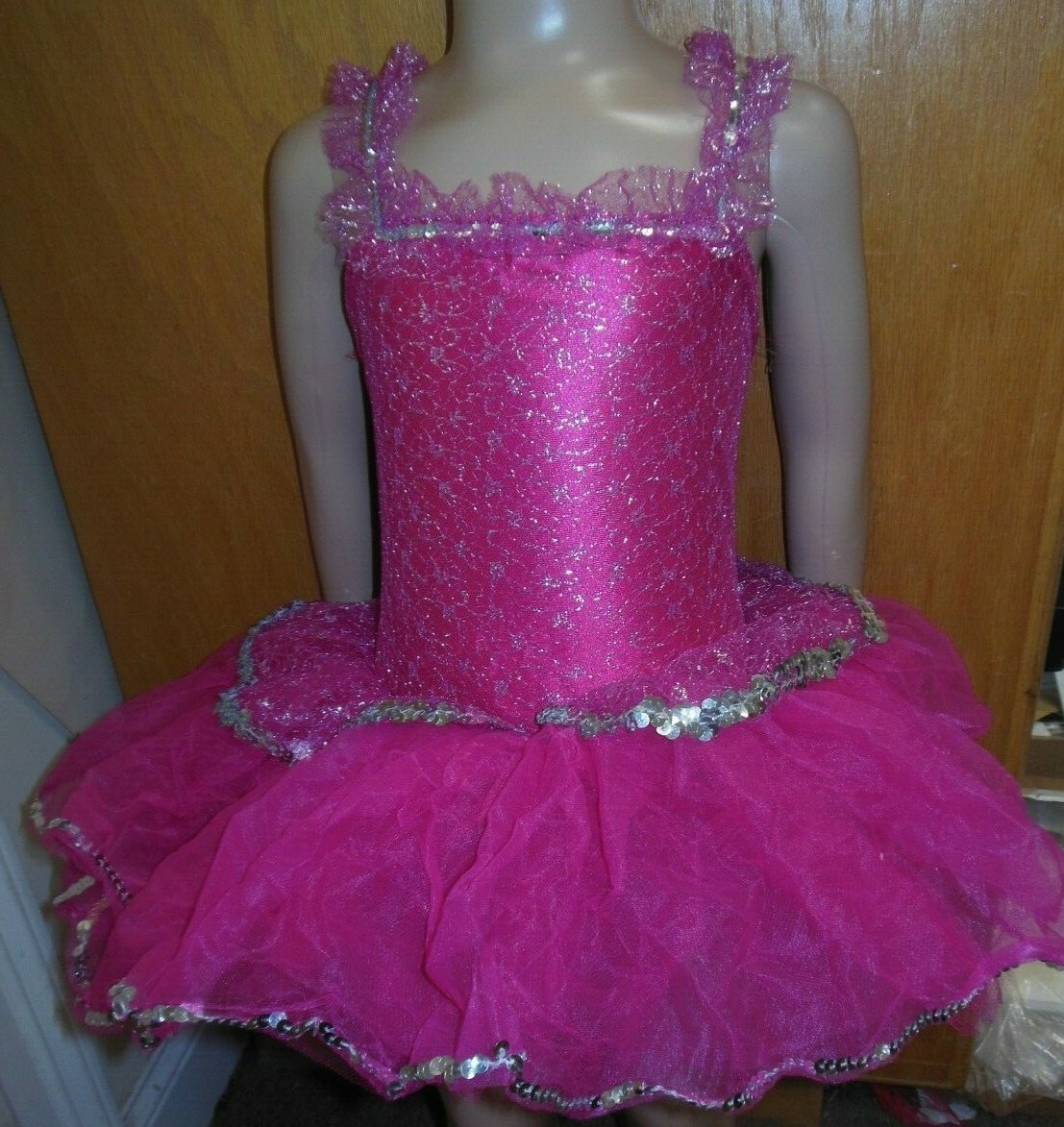 Dance Costume with attached peplum tutu girls sizes Rasberry silver lace Ballet