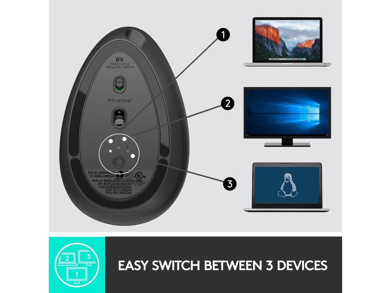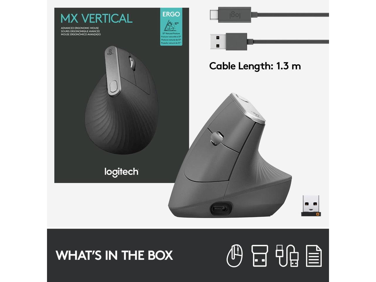 Logitech MX Vertical Wireless Mouse Advanced Ergonomic Design Reduces Muscle S
