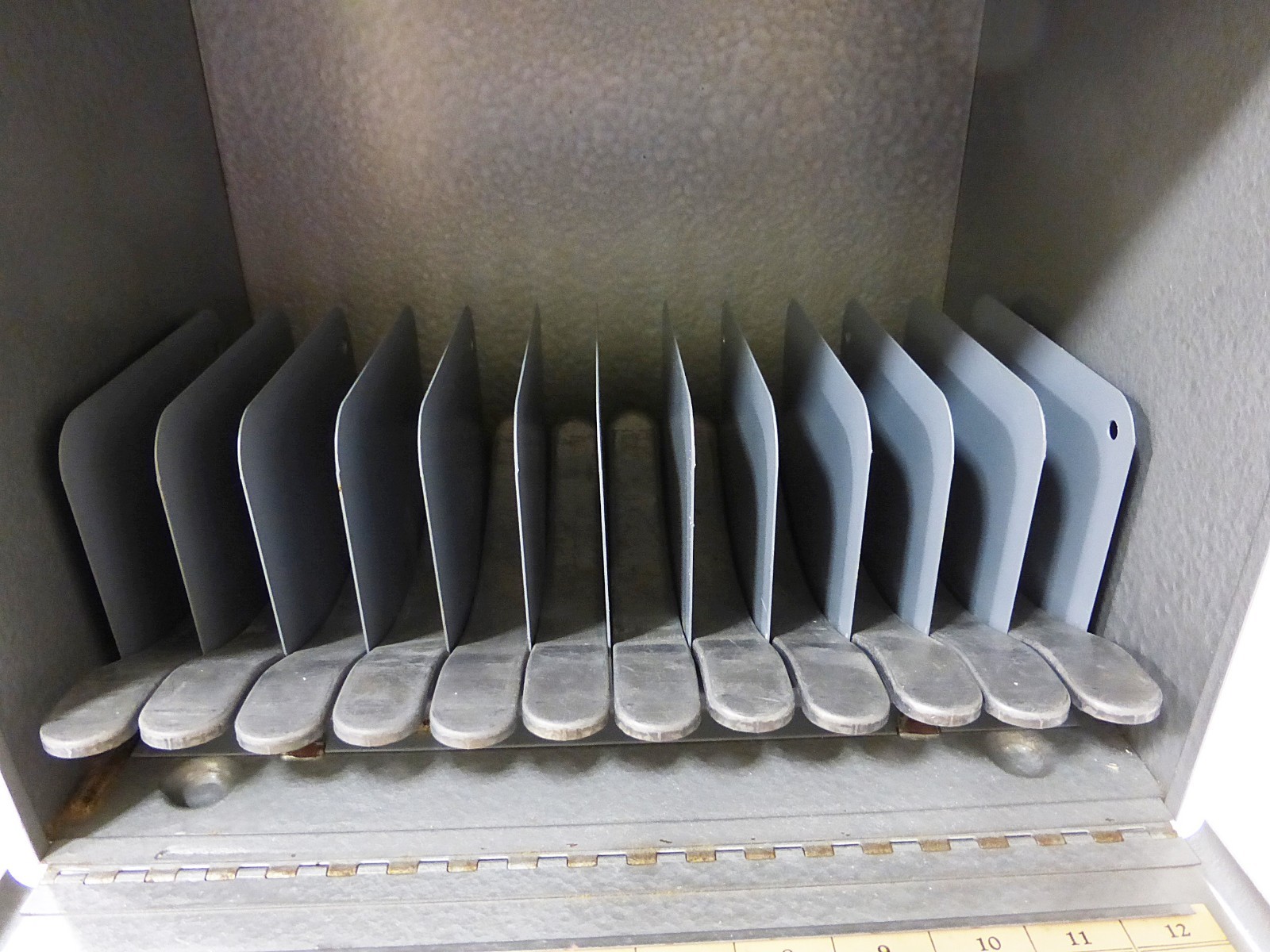 Vtg Brumberger 8 mm metal reel holder case storage bin 1950 mid century