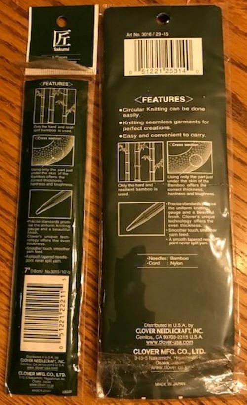Clover Takumi Bamboo Circular and straight Knitting Needles - 29 and 7