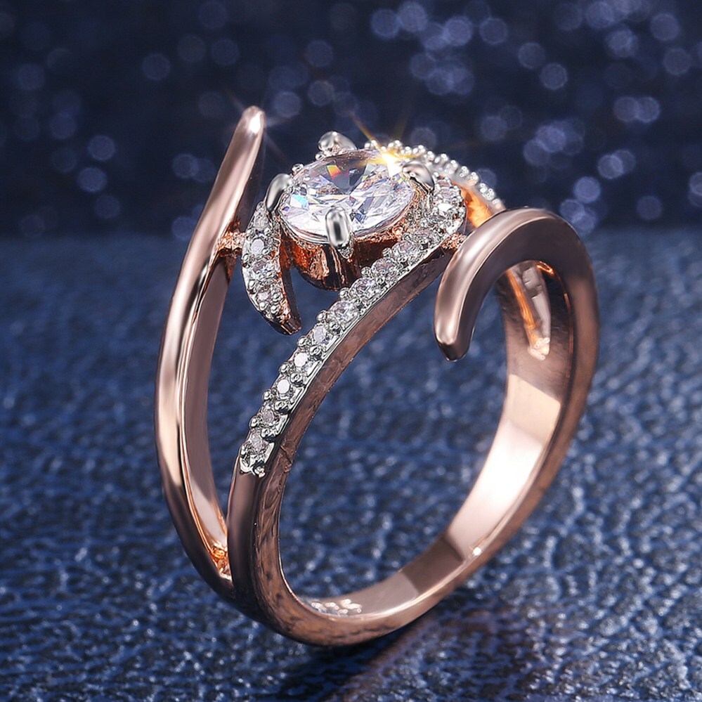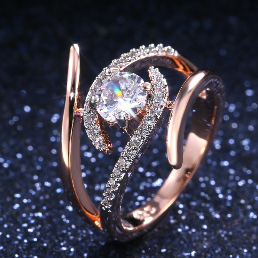 как выглядит Fashion Two Tone Wedding Ring Women 925 Silver Cubic Zircon Sz 6-10 фото