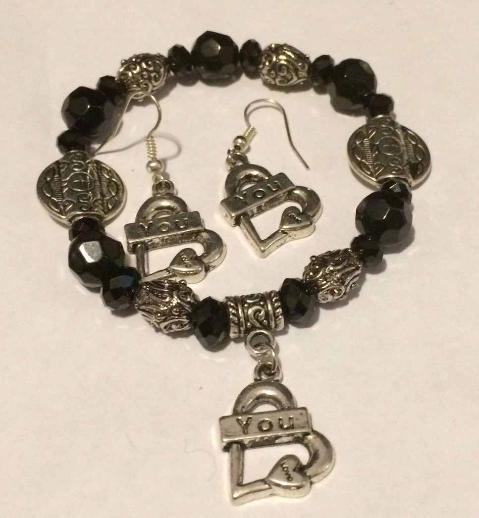 Handmade 3 Sets of Crystal beaded Charm Bracelet and Earrings Sets for girls