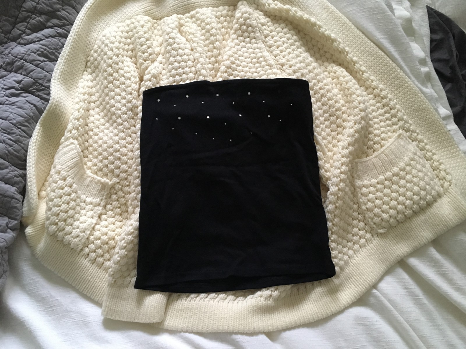 Black Strapless Convertible Tube Tank Top Clear Rhinestones Detachable Straps