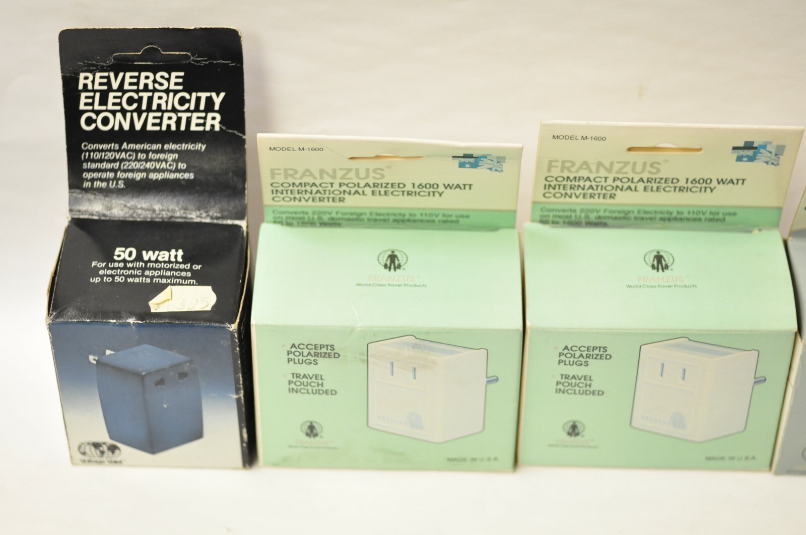 Group of international electrical converters as shown. New old stock.