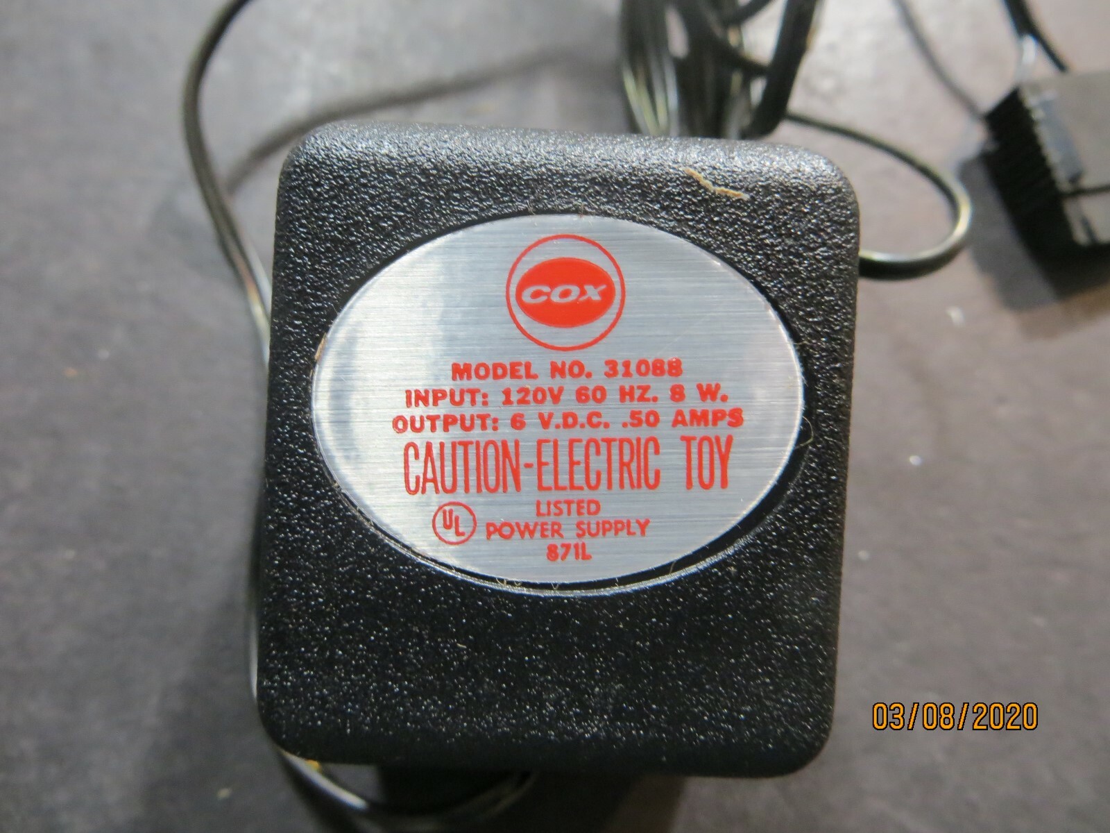Vintage Cox Model No. 31088 6v Transformer
