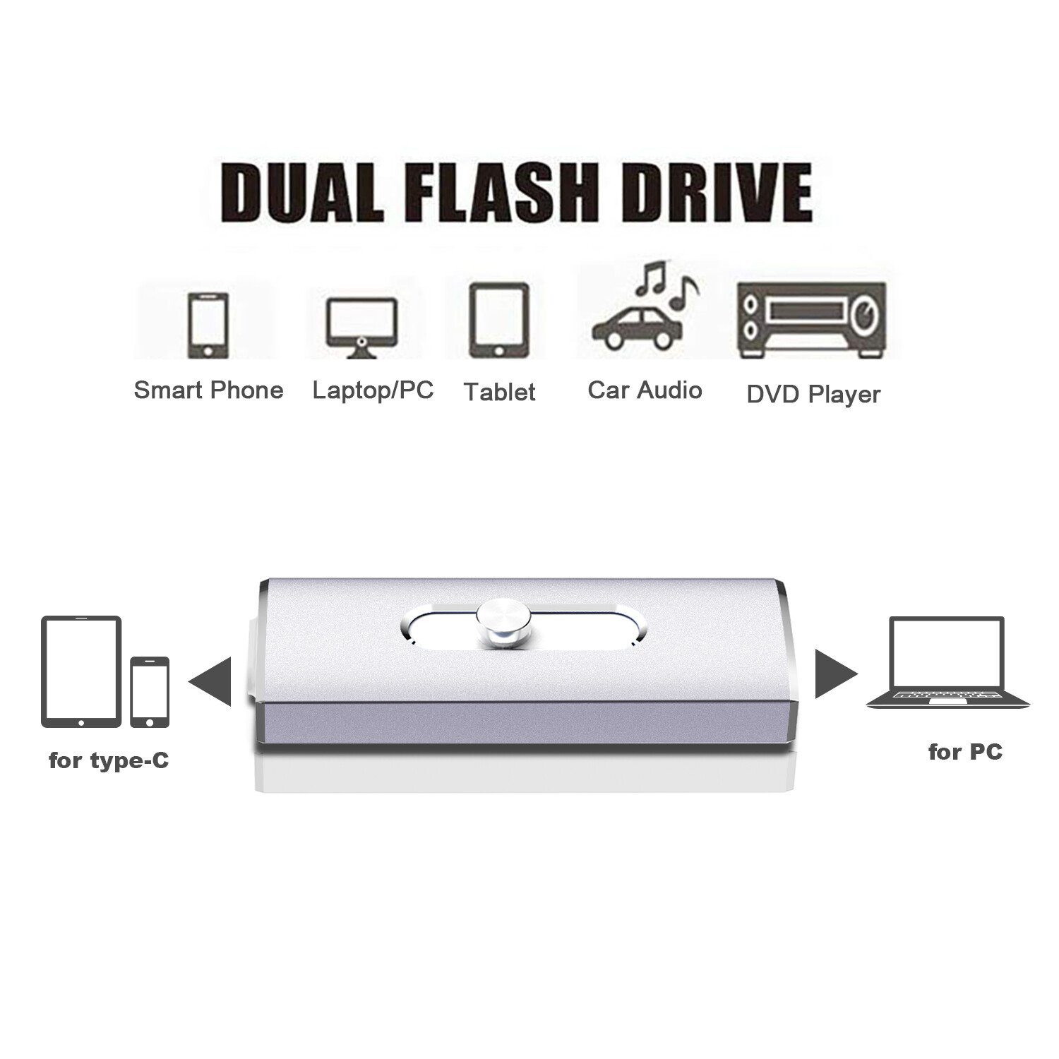32G 64G 128G Type C USB 3.0 Flash Drive OTG Memory Stick 2-in-1 Thumb Drive
