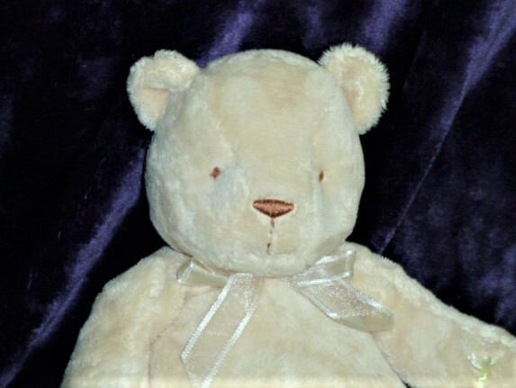 как выглядит VTG EDEN CREAM IVORY bear white organza bow -14"H top of head to feet; 9" plush фото