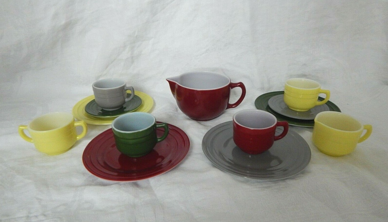 как выглядит VTG HAZEL ATLAS LITTLE HOSTESS SET CHILDS TOY DISH SET MODERNTONE 13 PC PARTIAL фото