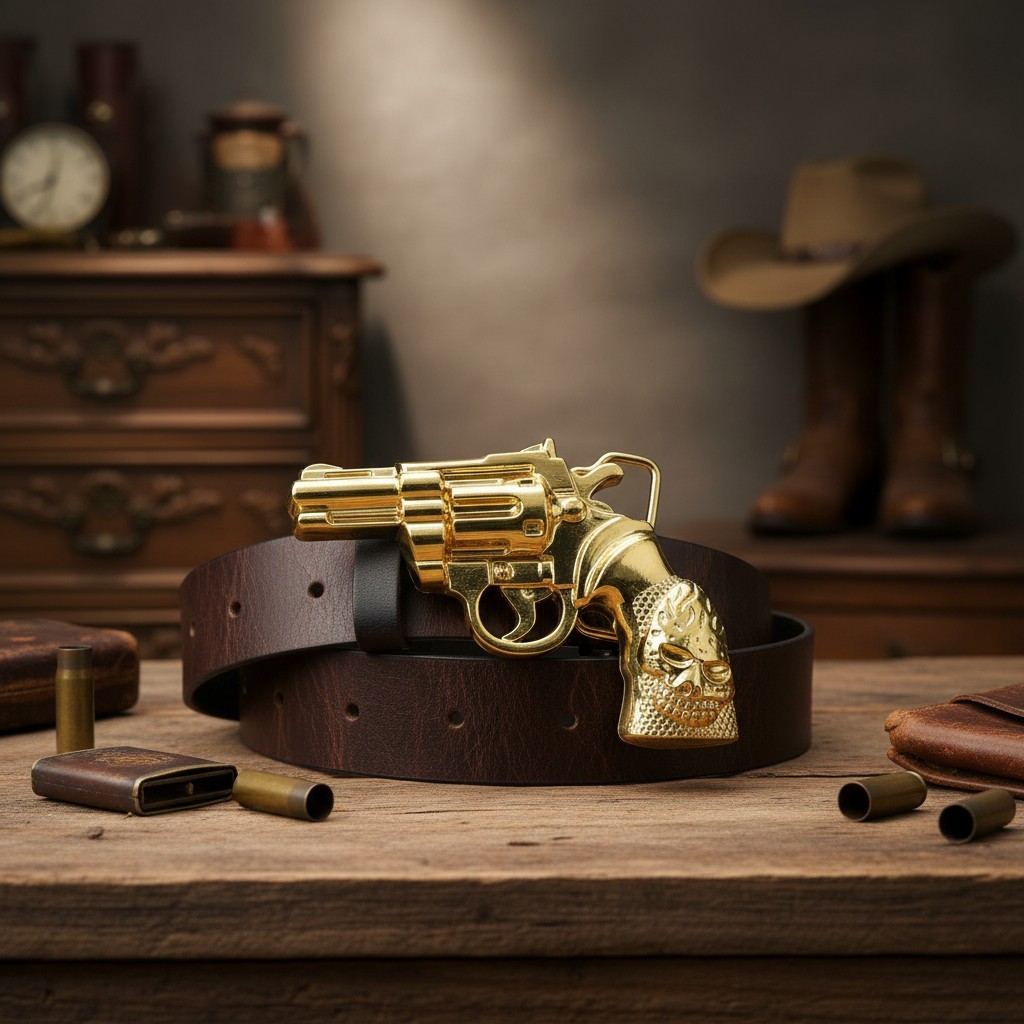 как выглядит New Men Women Buckle Gold Metal Western Cowboy Pistol Revolver Gun Weapon Skull фото