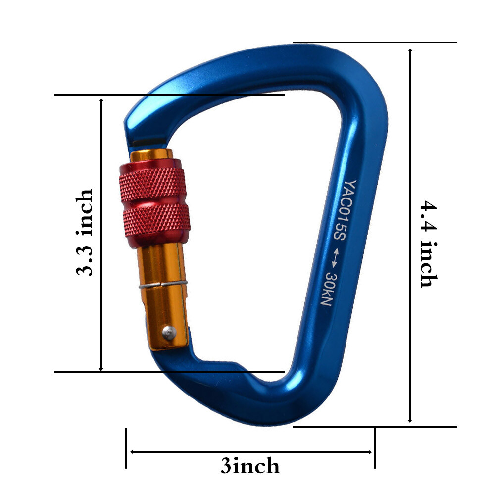 30KN Outdoor Rock Climbing Aluminum Alloy Carabiner Screw Locking D-Shape Hook