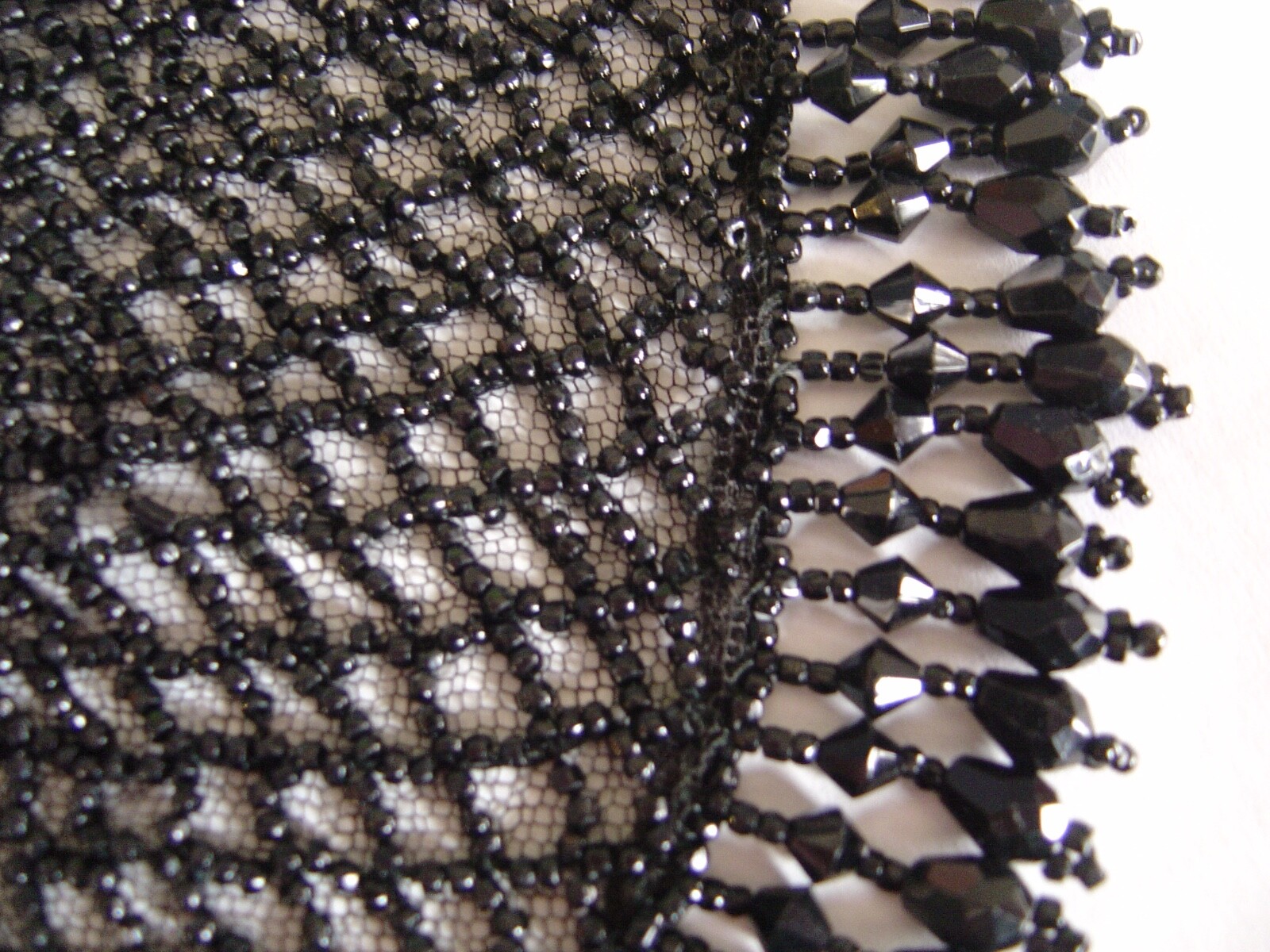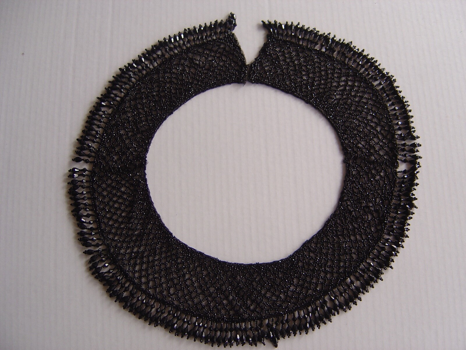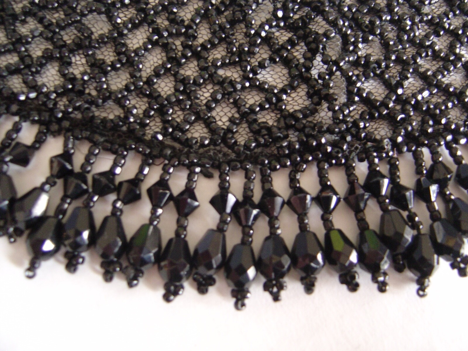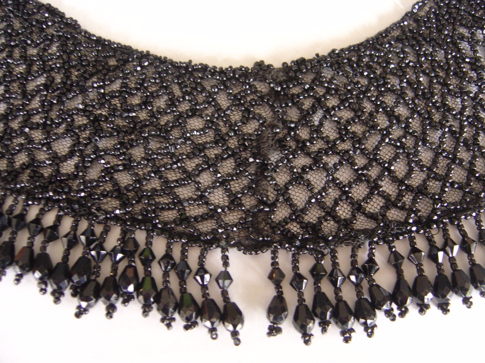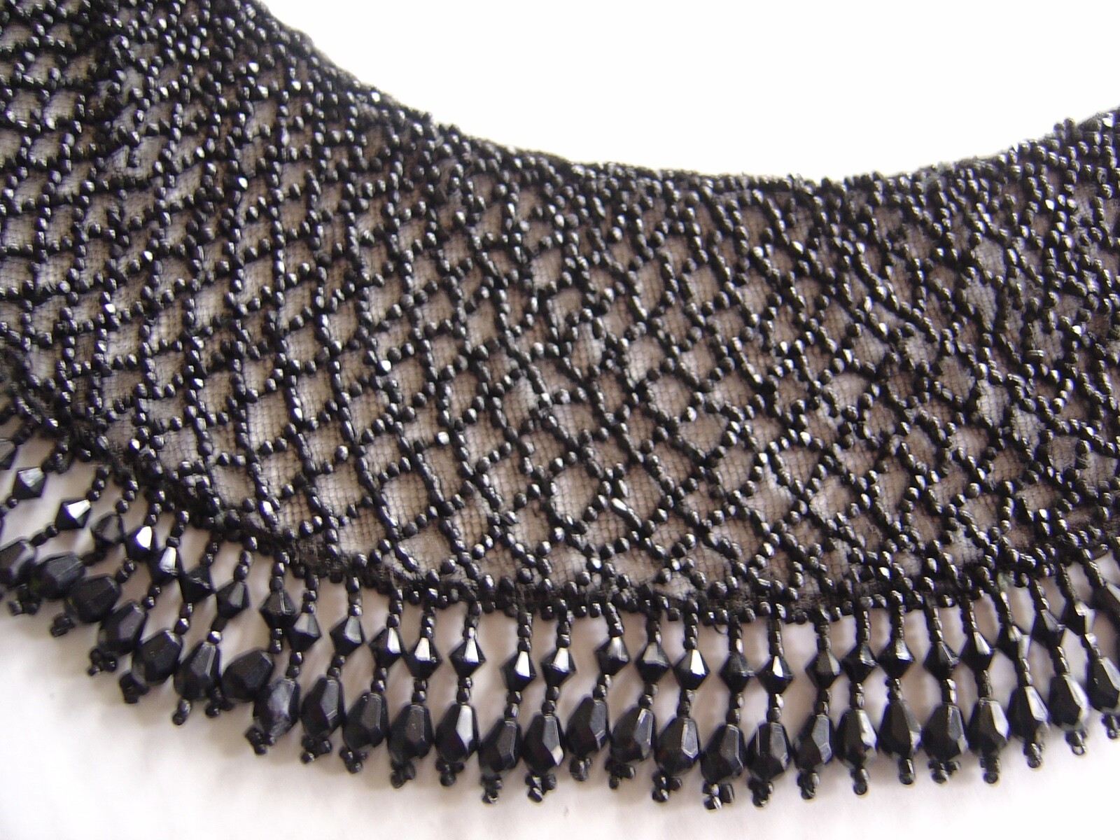 VINTAGE LARGE BLACK GLASS BEADED LACY COLLAR