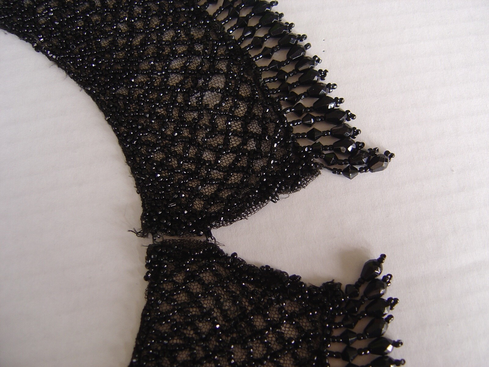 как выглядит VINTAGE LARGE BLACK GLASS BEADED LACY COLLAR фото