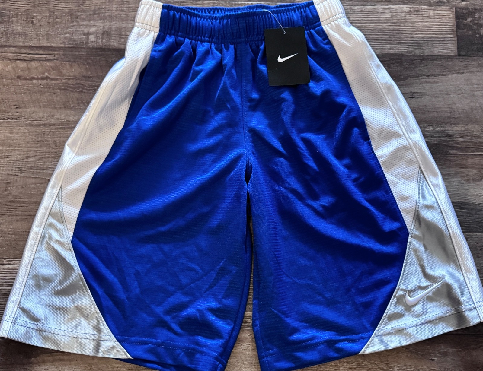 NWT Nike Boys YSM Gray/Blue/White BIG SWOOSH Shorts Set Small