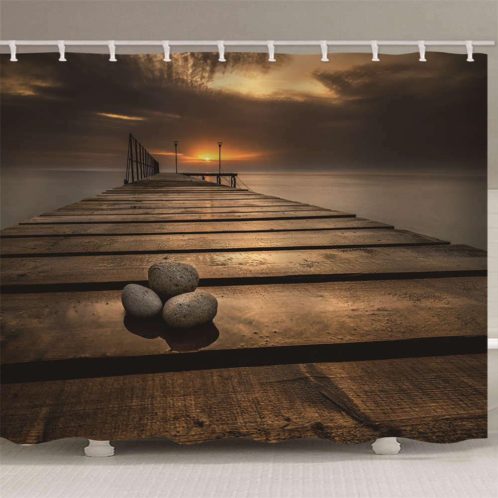 как выглядит Wood Mosaic Gray Clouds 3D Shower Curtain Waterproof Fabric Bathroom Decoration фото