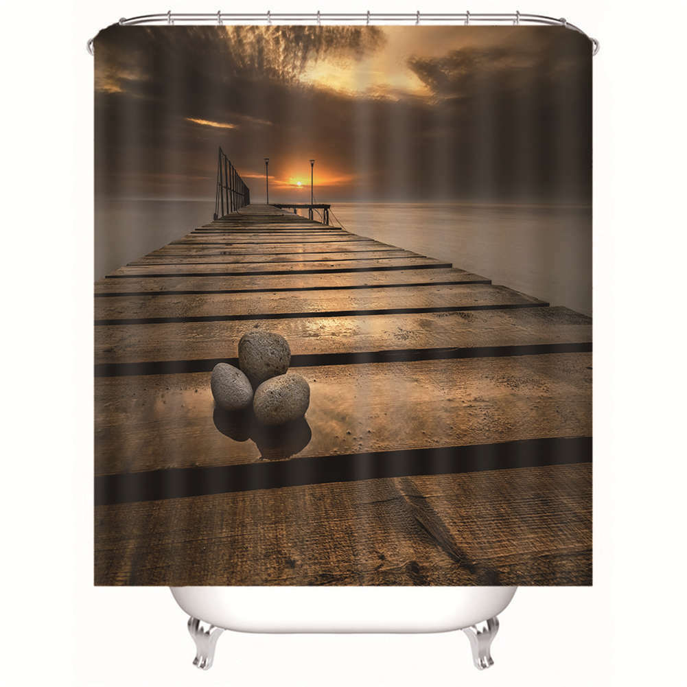 Wood Mosaic Gray Clouds 3D Shower Curtain Waterproof Fabric Bathroom Decoration